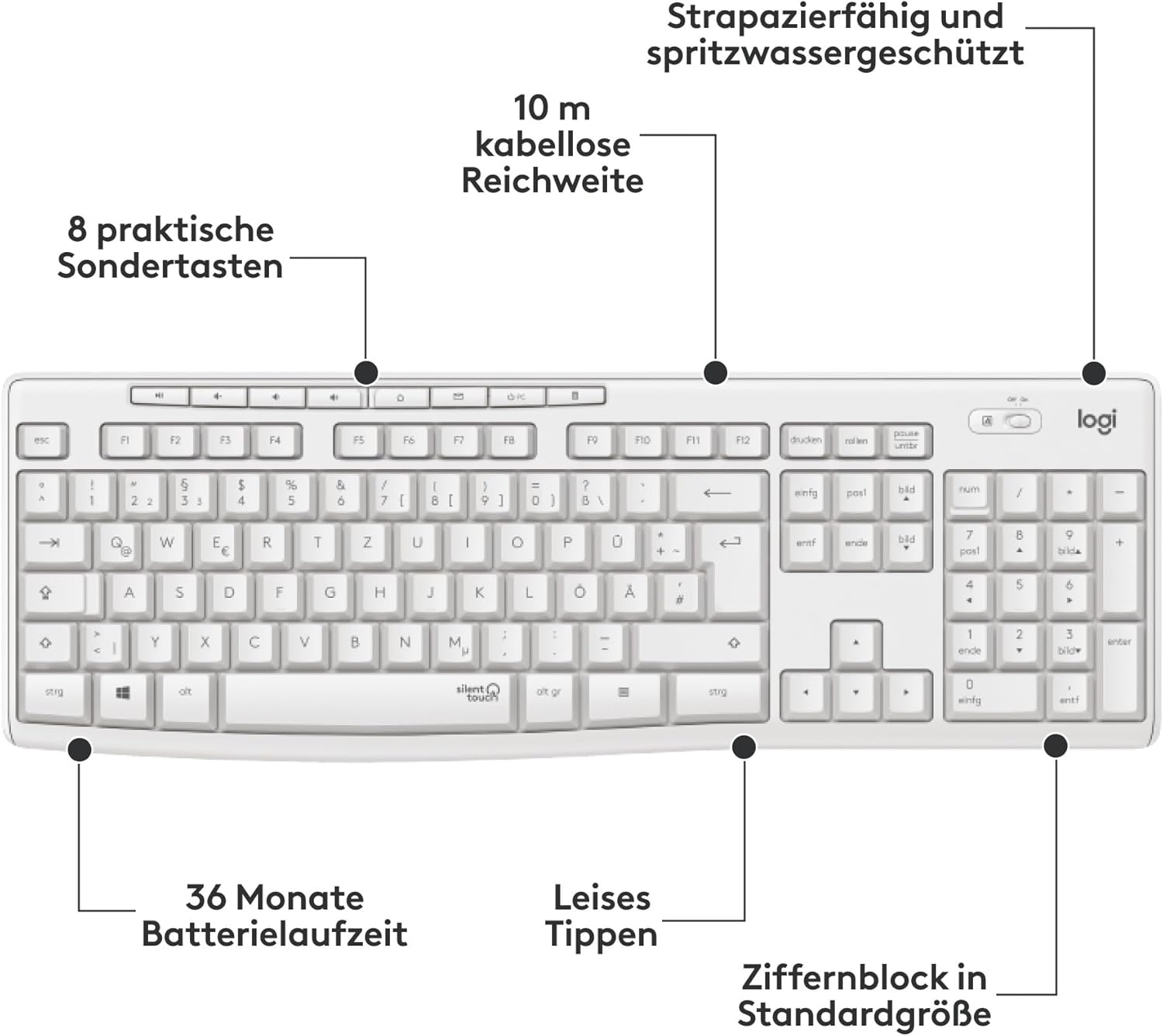Свързва се само за 3 секунди (2) чрез малкия приемник. MK295 Silent се свързва лесно чрез plug-and-play и е съвместим с Windows и ChromeOS.