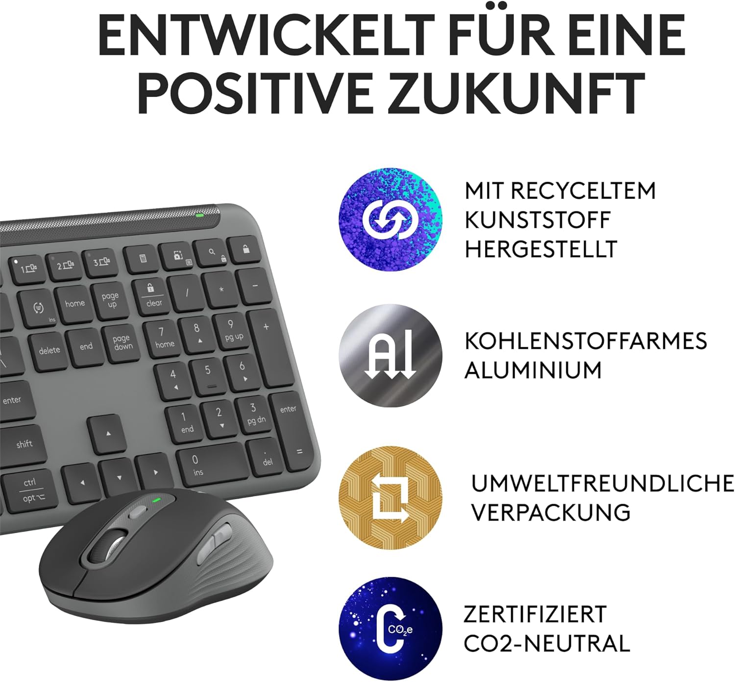 • Проектиран с мисъл за устойчивост: Пластмасовите части на Signature Slim MK950 for Business са изработени от поне 61 процента рециклирана пластмаса(2)