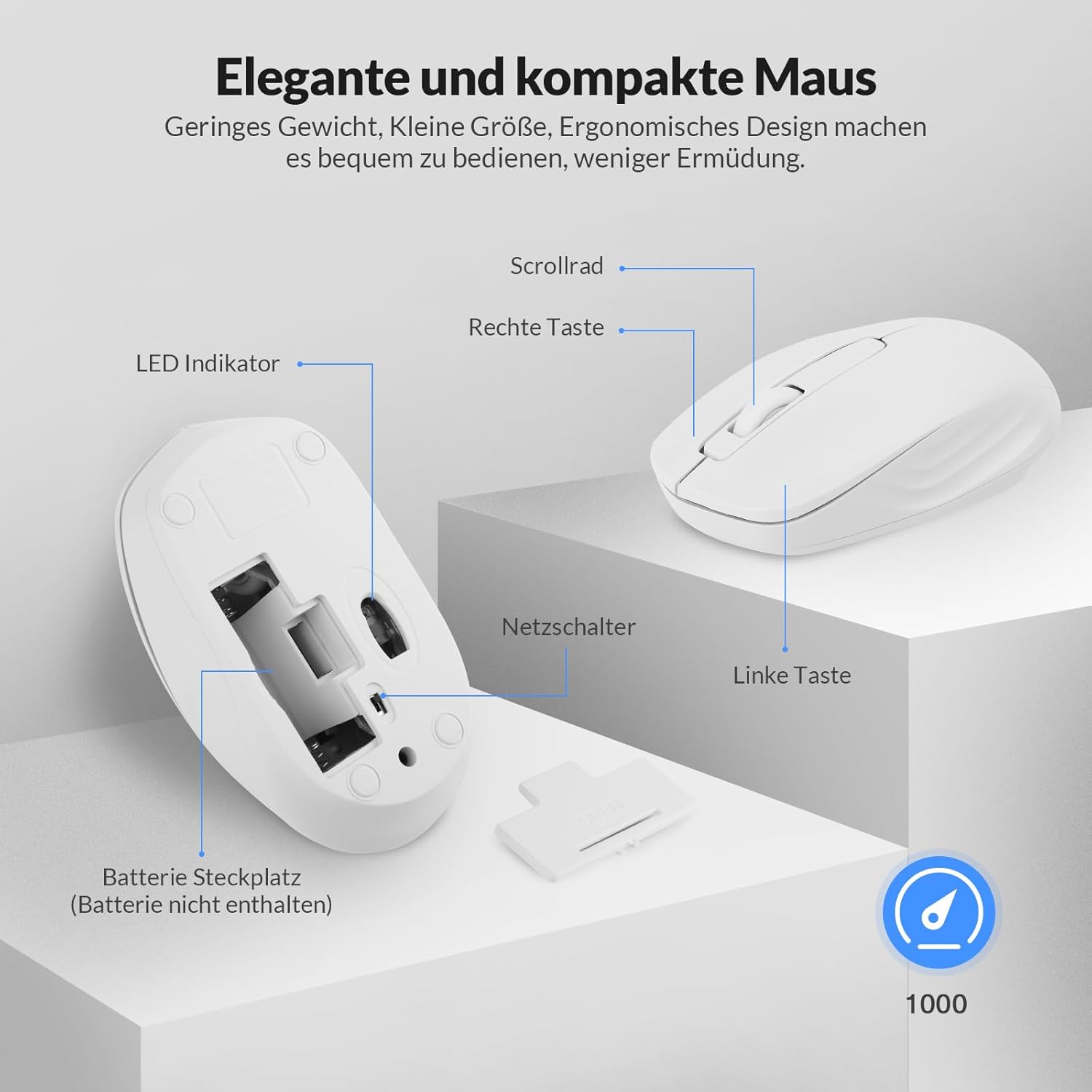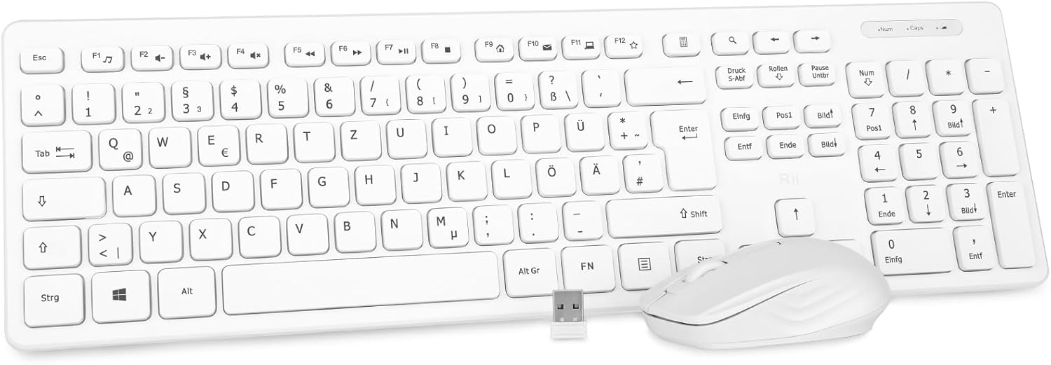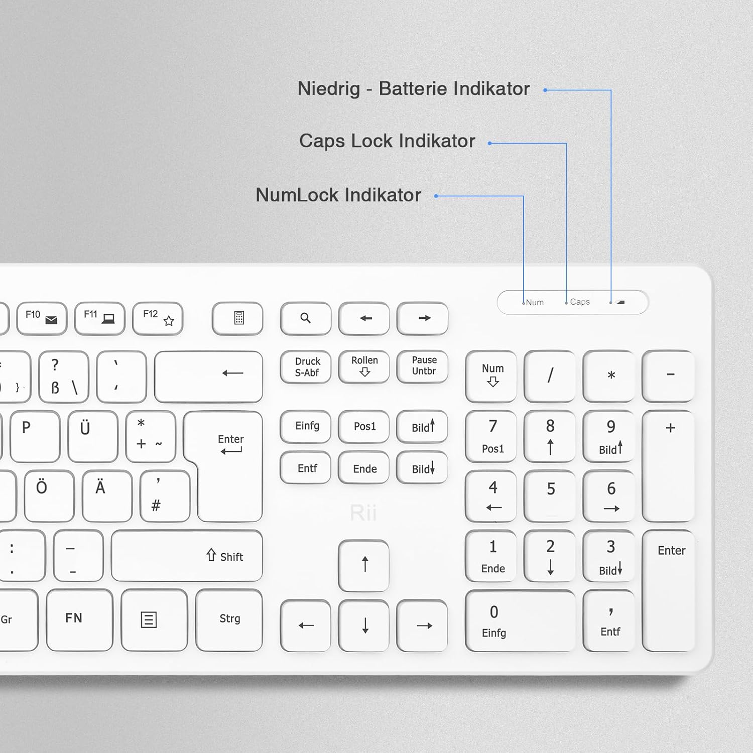 Комплект безжична клавиатура и мишка Rii, безжична клавиатура с мишка, безжична клавиатура и мишка, за компютър/лаптоп/Windows/Smart TV, немска подредба - бяла