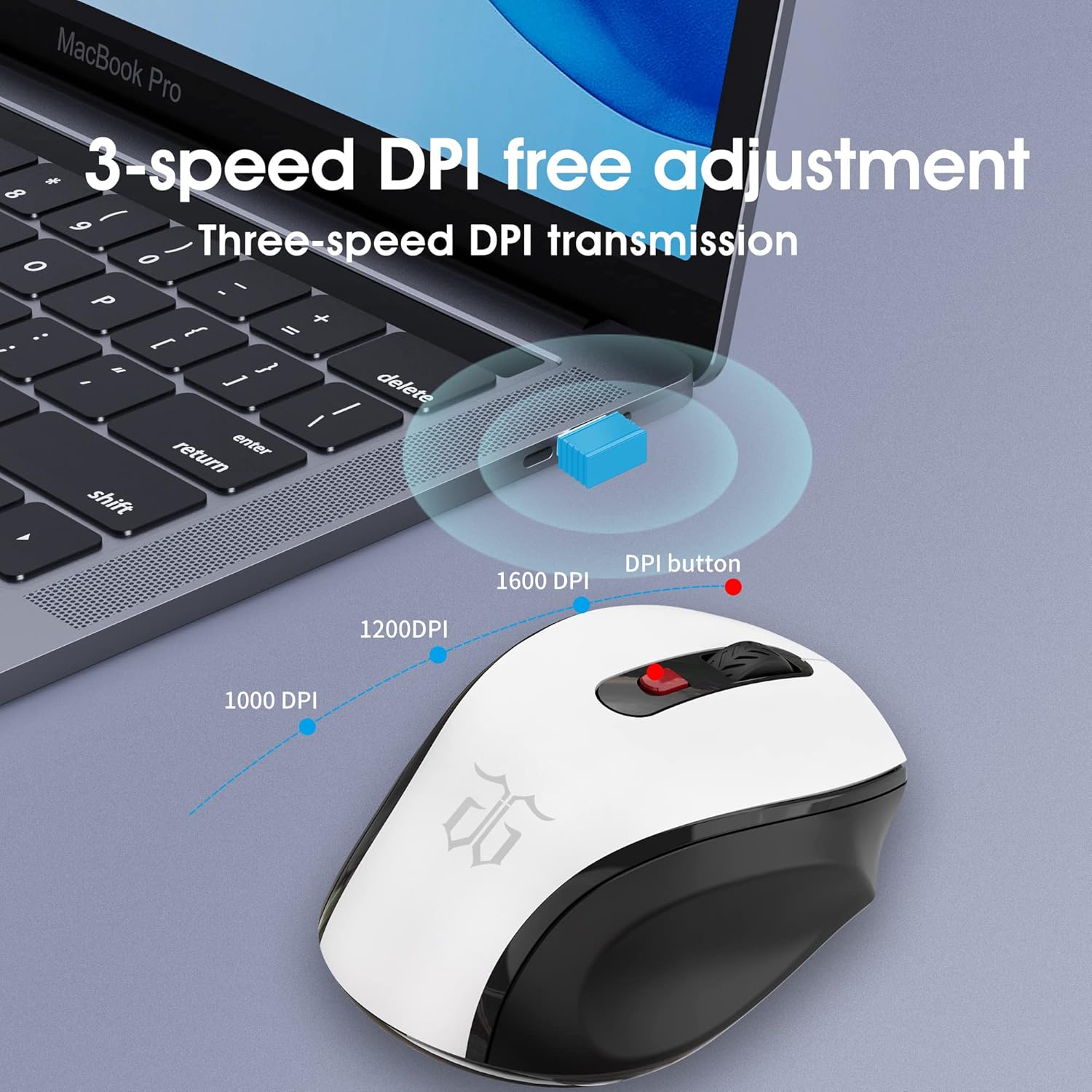 • 【Надеждно захранване】Тази презареждаща се клавиатура с 60 клавиша е оборудвана с батерия 2000 mAh, а мишката изисква стандартна AAA батерия. Зареждането на клавиатурата с 5V/1A отнема само 2 часа и може да се използва непрекъснато повече от 44 часа. Поддържа енергоспестяващ режим на заспиване.