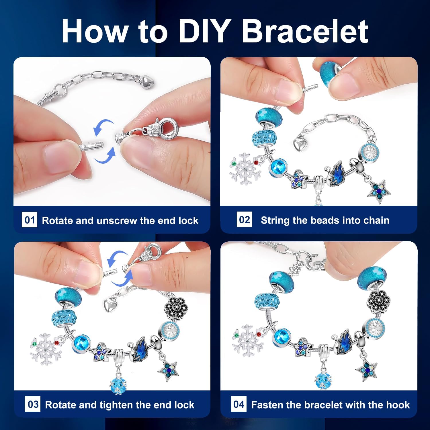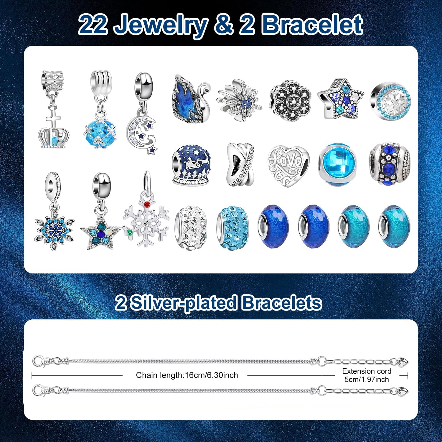Комплект бижута „Направи си сам“ от 24 части с гривни и колиета | Идеален коледен подарък за деца на възраст 6-13 години с изненадващо съдържание (син)