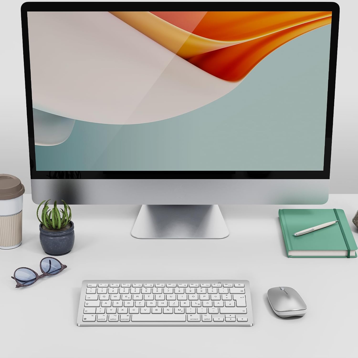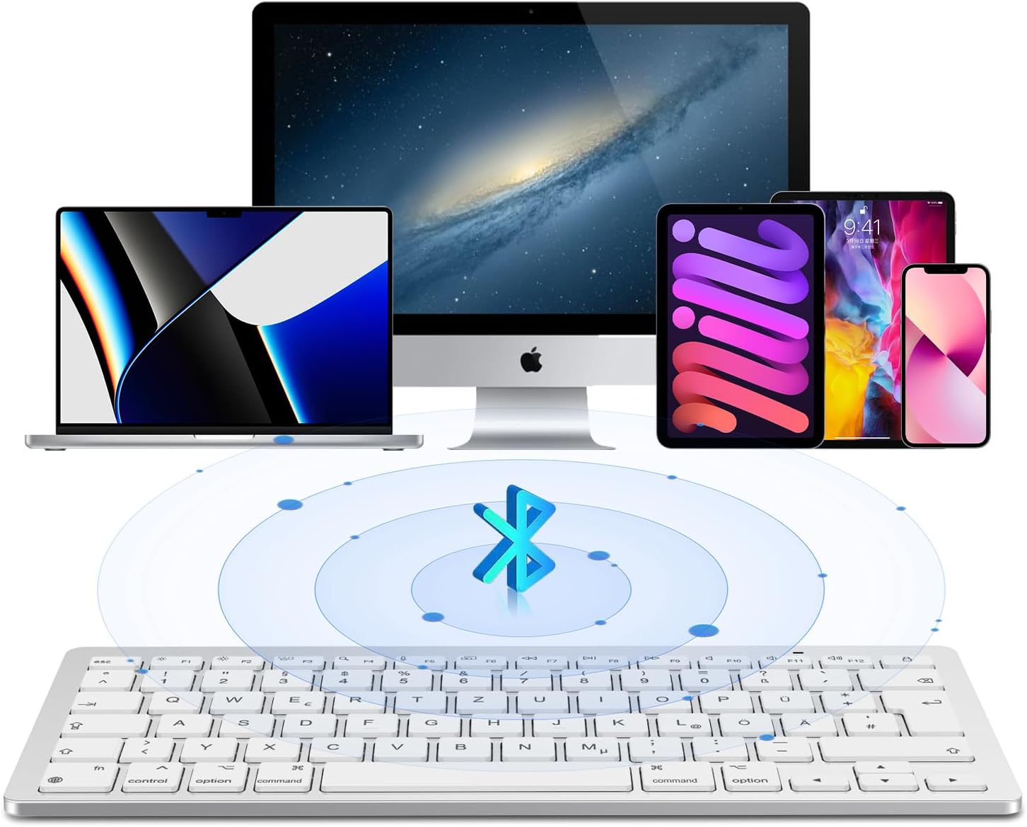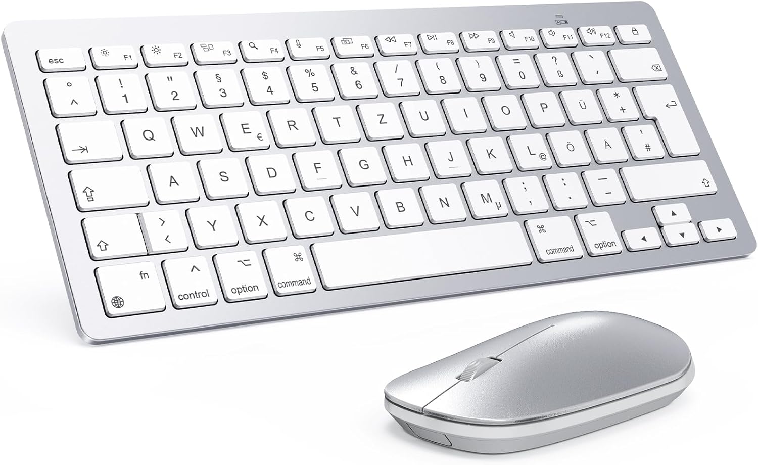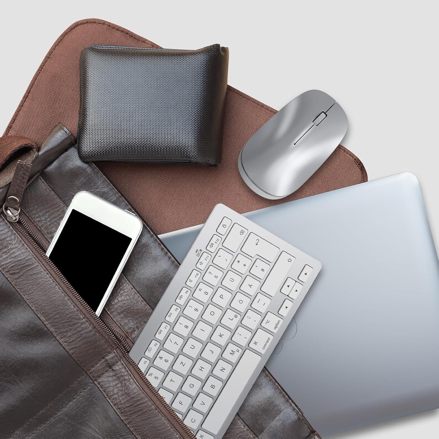 Комплект Bluetooth клавиатура и мишка OMOTON за Mac, компактна безжична клавиатура и мишка, съвместима с MacBook Pro/Air, iMac, iMac Pro, Mac mini, Mac Pro, QWERTZ DE оформление, сребриста