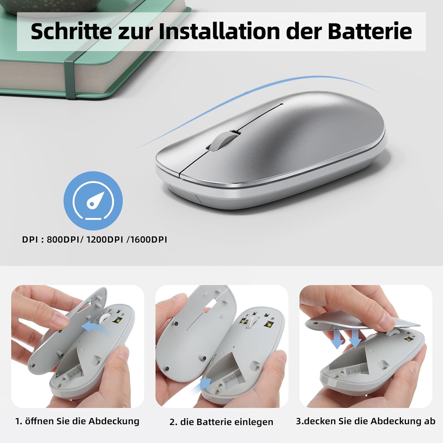 • 【Bluetooth клавиатура и мишка за безшумно писане】Тази безжична клавиатура е снабдена с механизъм за превключване „ножично“, който осигурява комфортна обратна връзка при писане, позволявайки тихо писане и ефективна работа. Ергономично проектираната мишка има тихо щракване. Този комплект е също така особено тънък и лек, което го прави лесен за носене.
