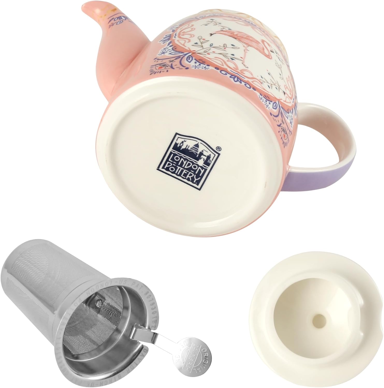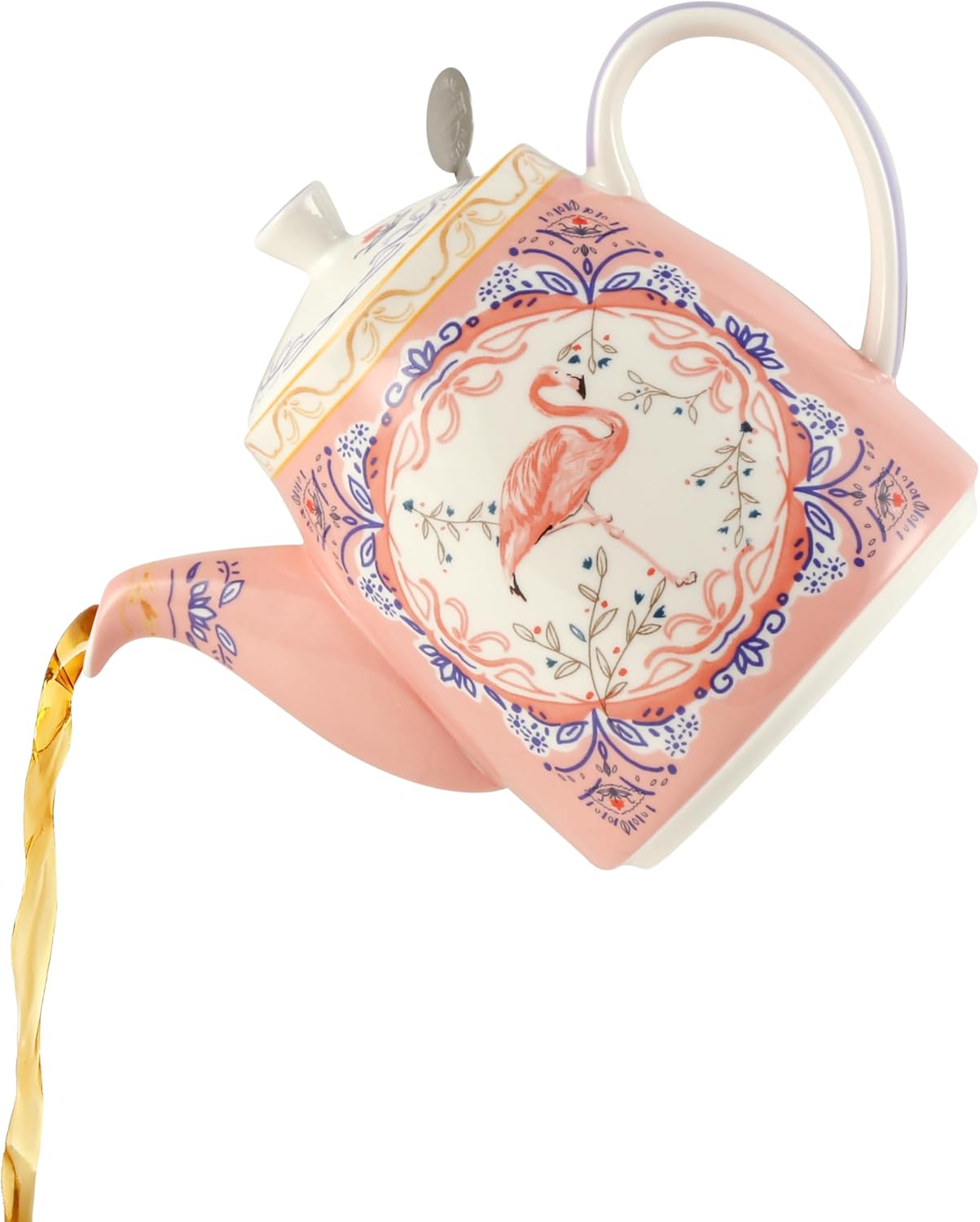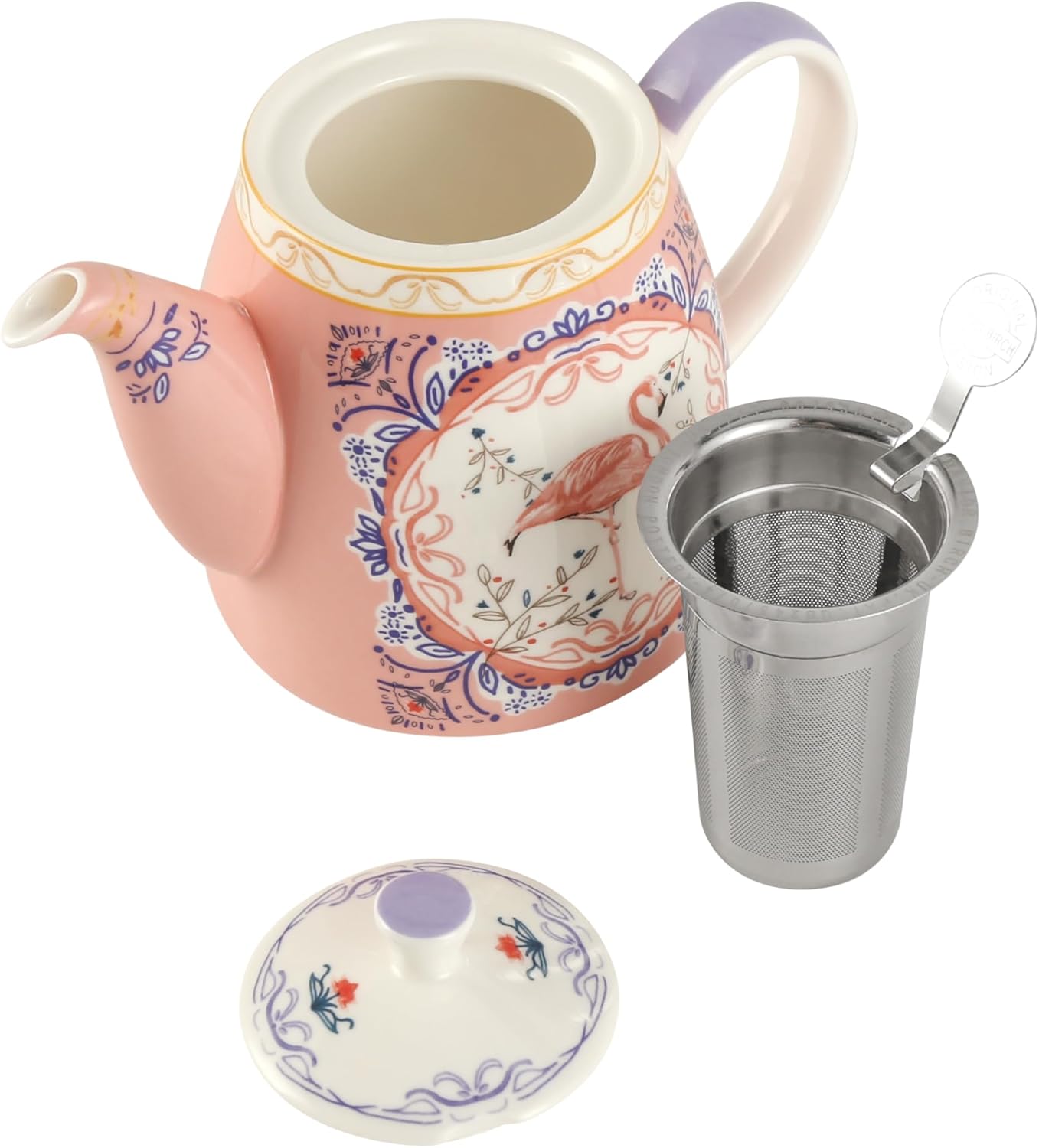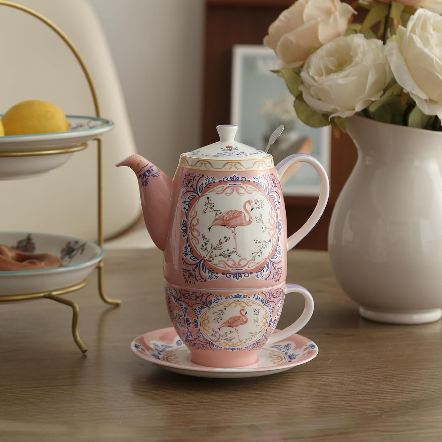 Комплект чайници London Pottery, костен порцелан, следобеден чай за един, животински мотив, чайник, чаша и чинийка (фламинго)