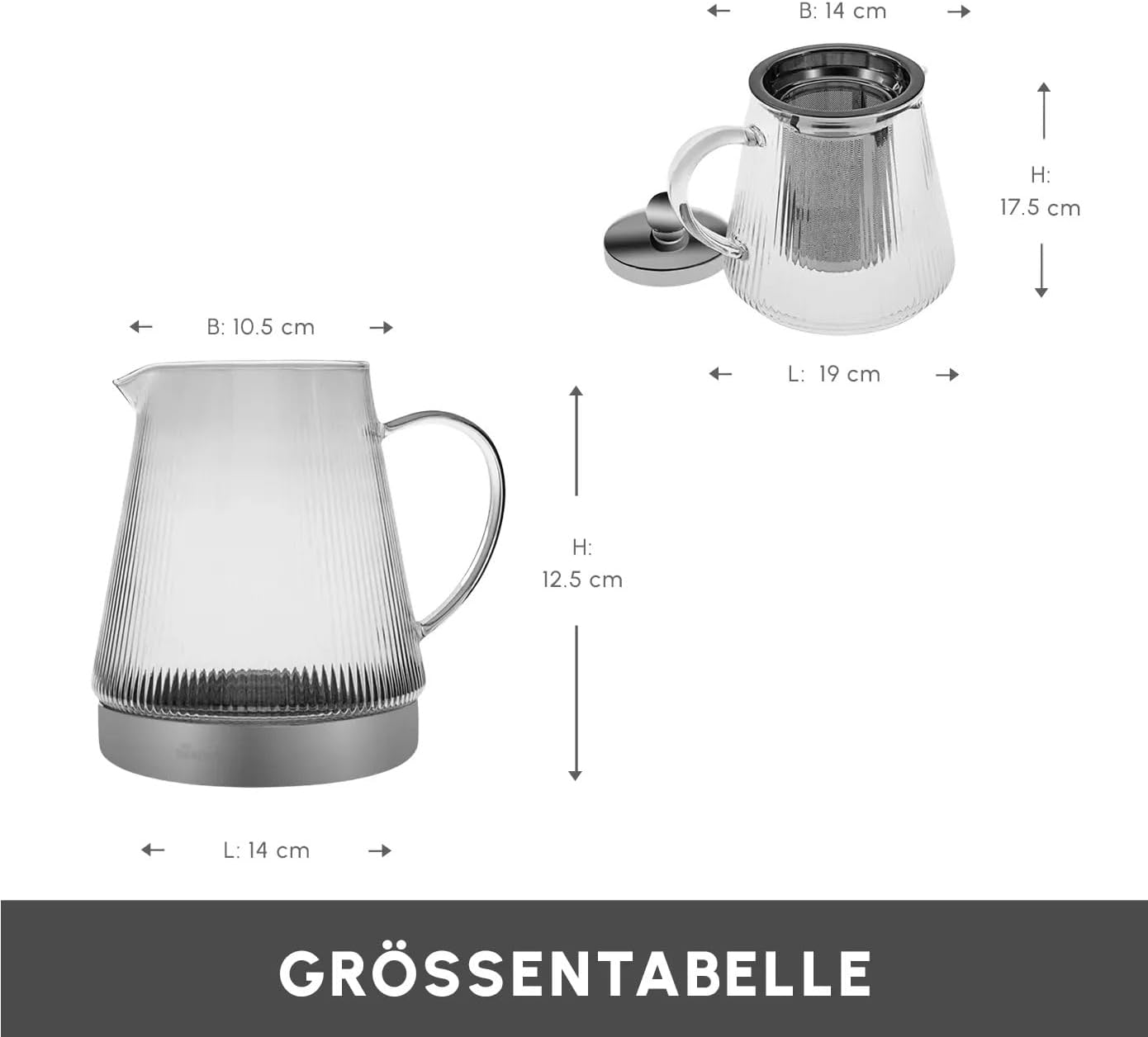 • Висококачествено боросиликатно стъкло: Този комплект чайници е изработен от висококачествено боросиликатно стъкло, предлагащо издръжливост и кристално чиста прозрачност, за да можете да наблюдавате процеса на приготвяне.