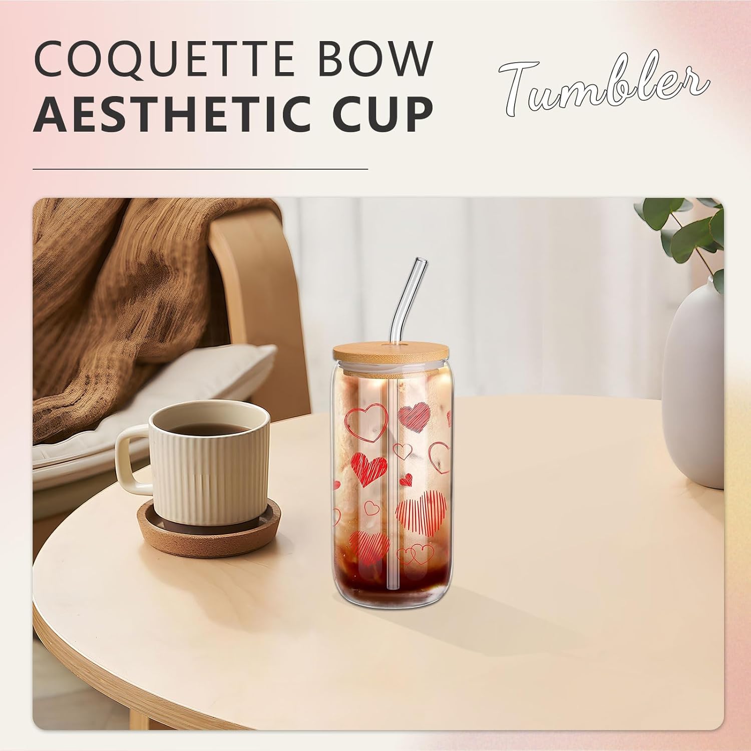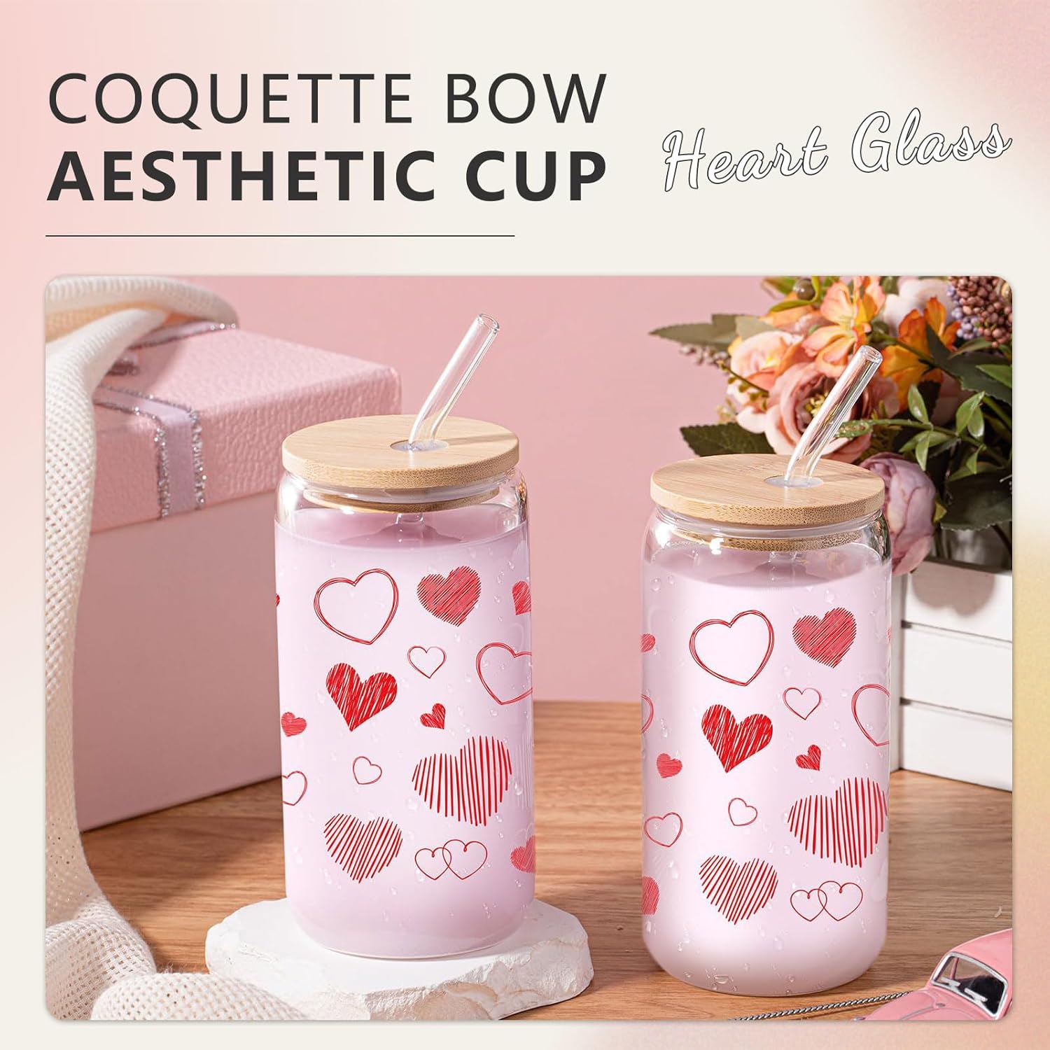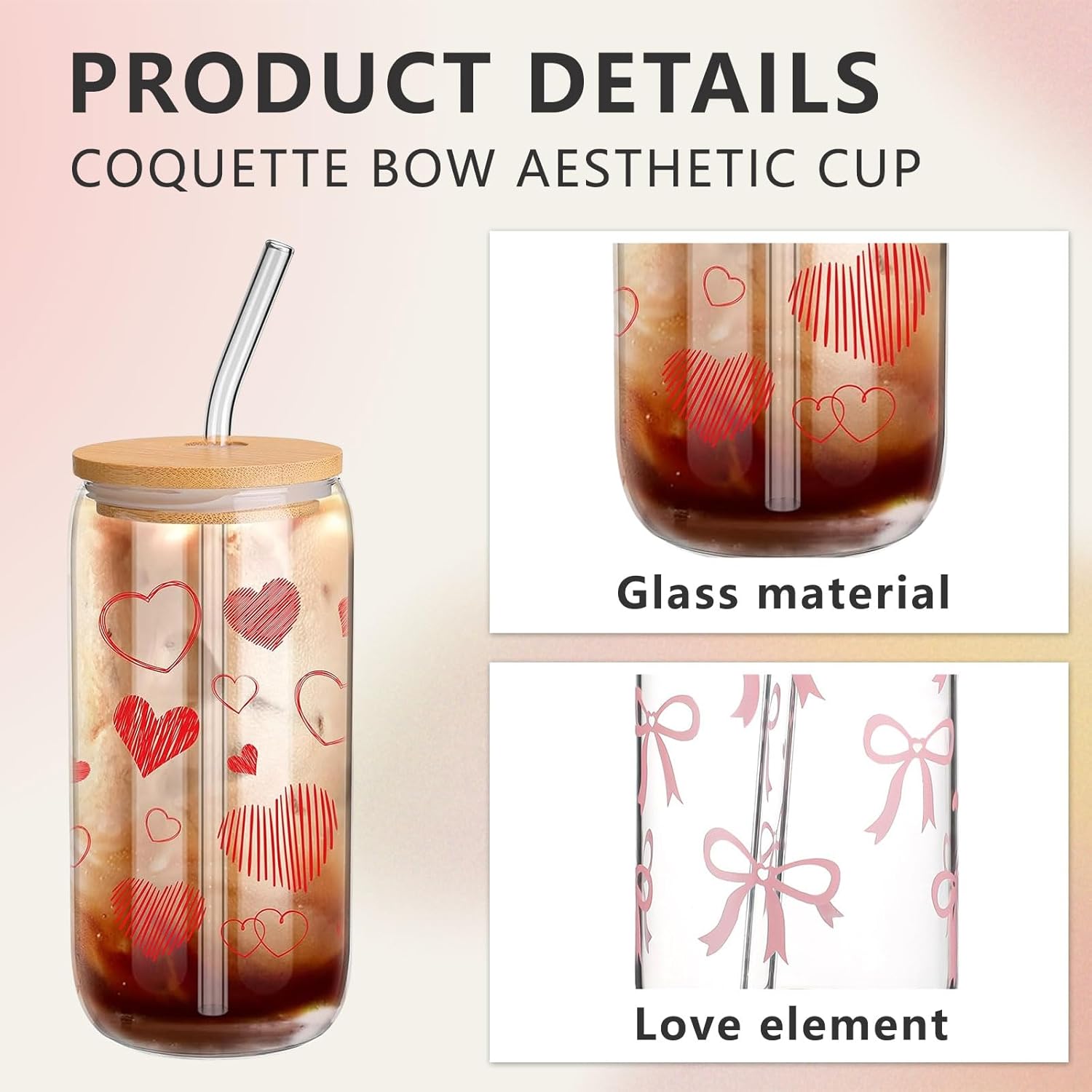 1. Пълен естетичен комплект: Изживейте върховното естетично изживяване с нашия комплект, който включва чаша за пиене от 473 мл със сламка и капак, стъклена сламка, сламка от неръждаема стомана и четка за чаша за чисто и стилно изживяване при пиене.