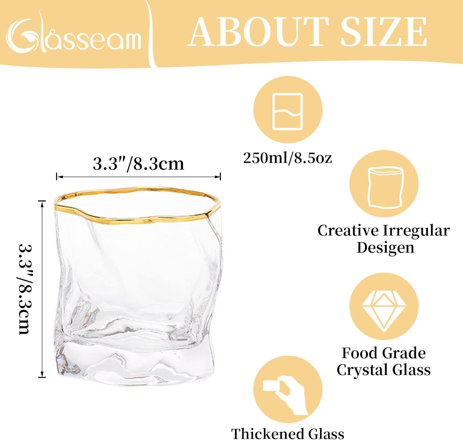 • Подходящ подарък за любителите на уиски: Тази чаша за уиски не е само за мъже; дамите също ще оценят нейния семпъл и елегантен стил. Зашеметяващо допълнение към всяка колекция от стъклени изделия или незаменим аксесоар за бар.