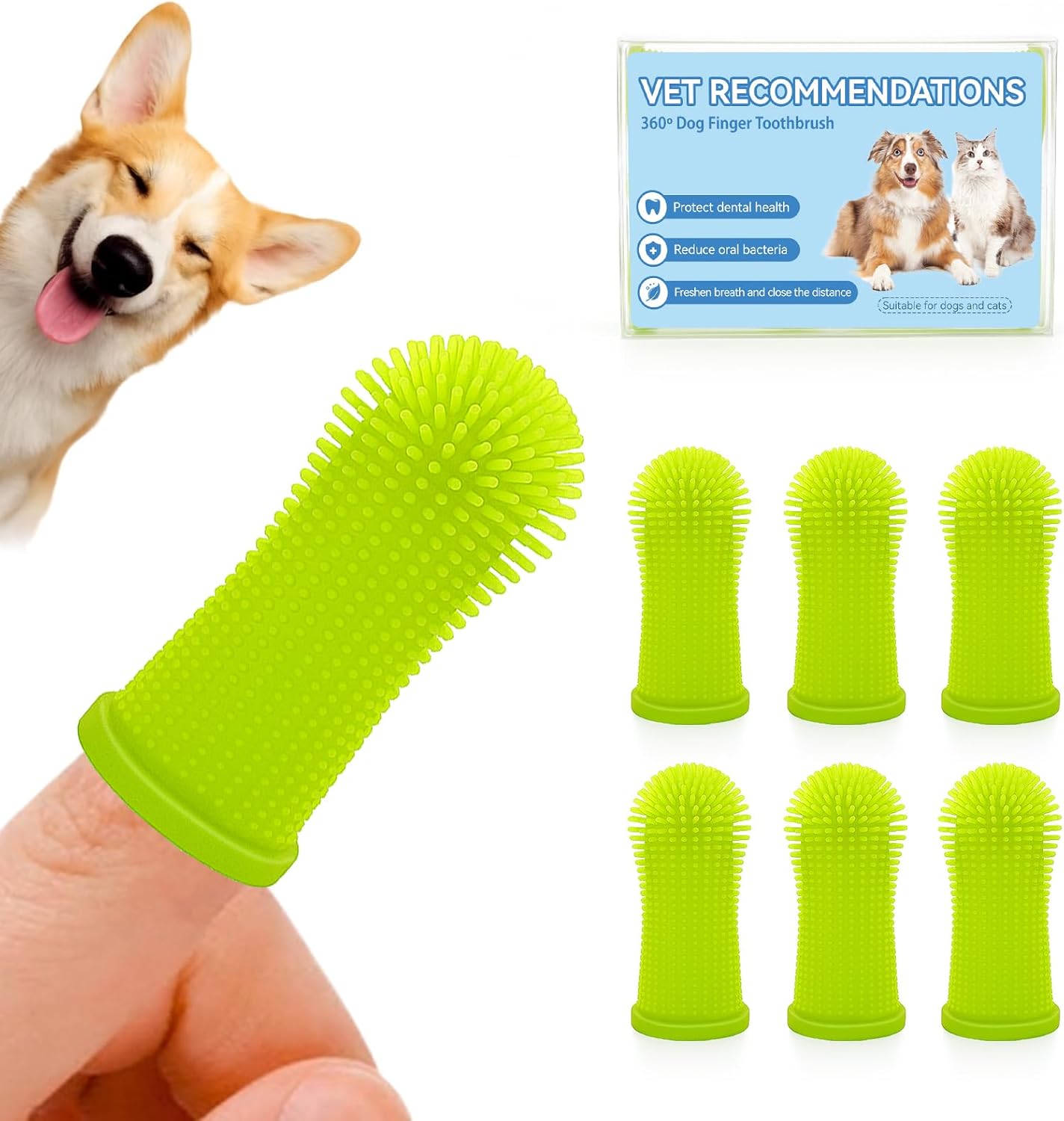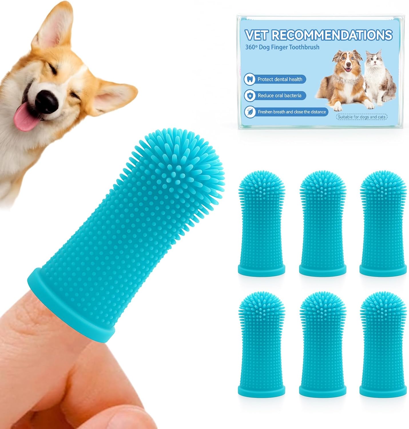 Комплект четки за зъби за кучета Aujzoo (6 броя), 360º почистване на зъбите на домашни любимци, четка за зъби за кучета и котки, силиконова четка за пръсти