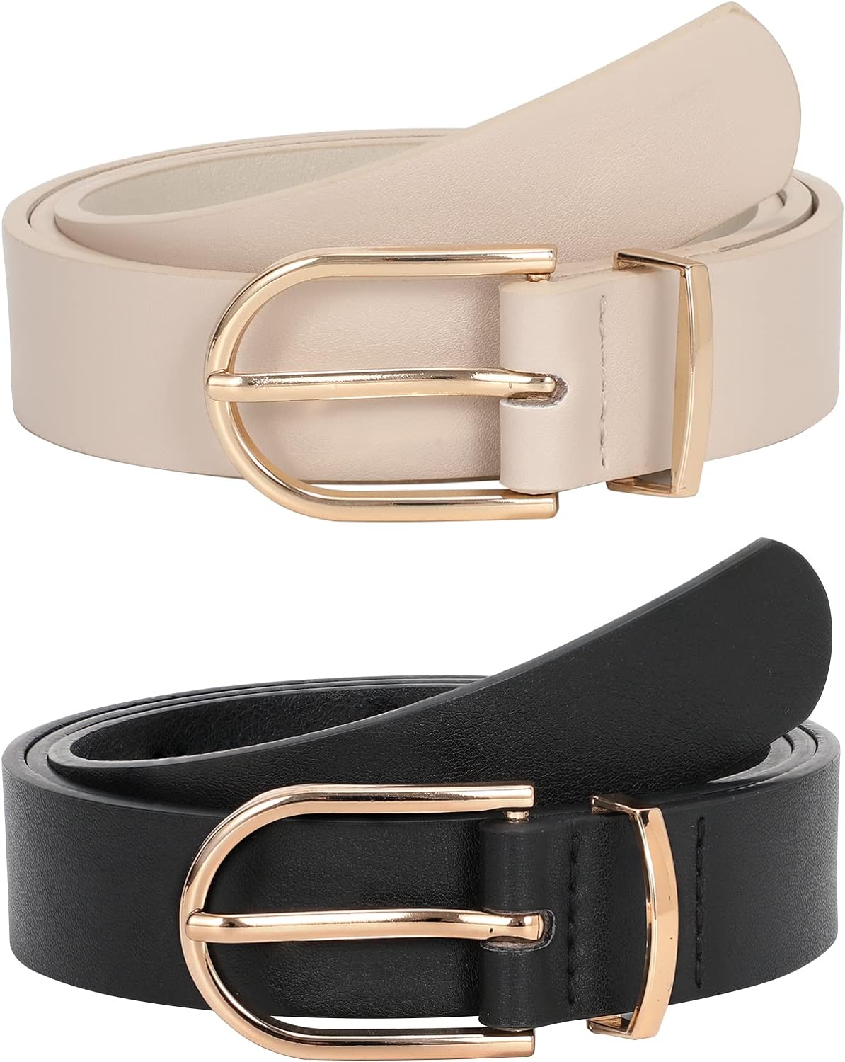 Комплект дамски колани JasGood, Отговаря на талия от 95 - 107 см, 2.8 см ширина, Висококачествена PU кожа, Бежов и черен