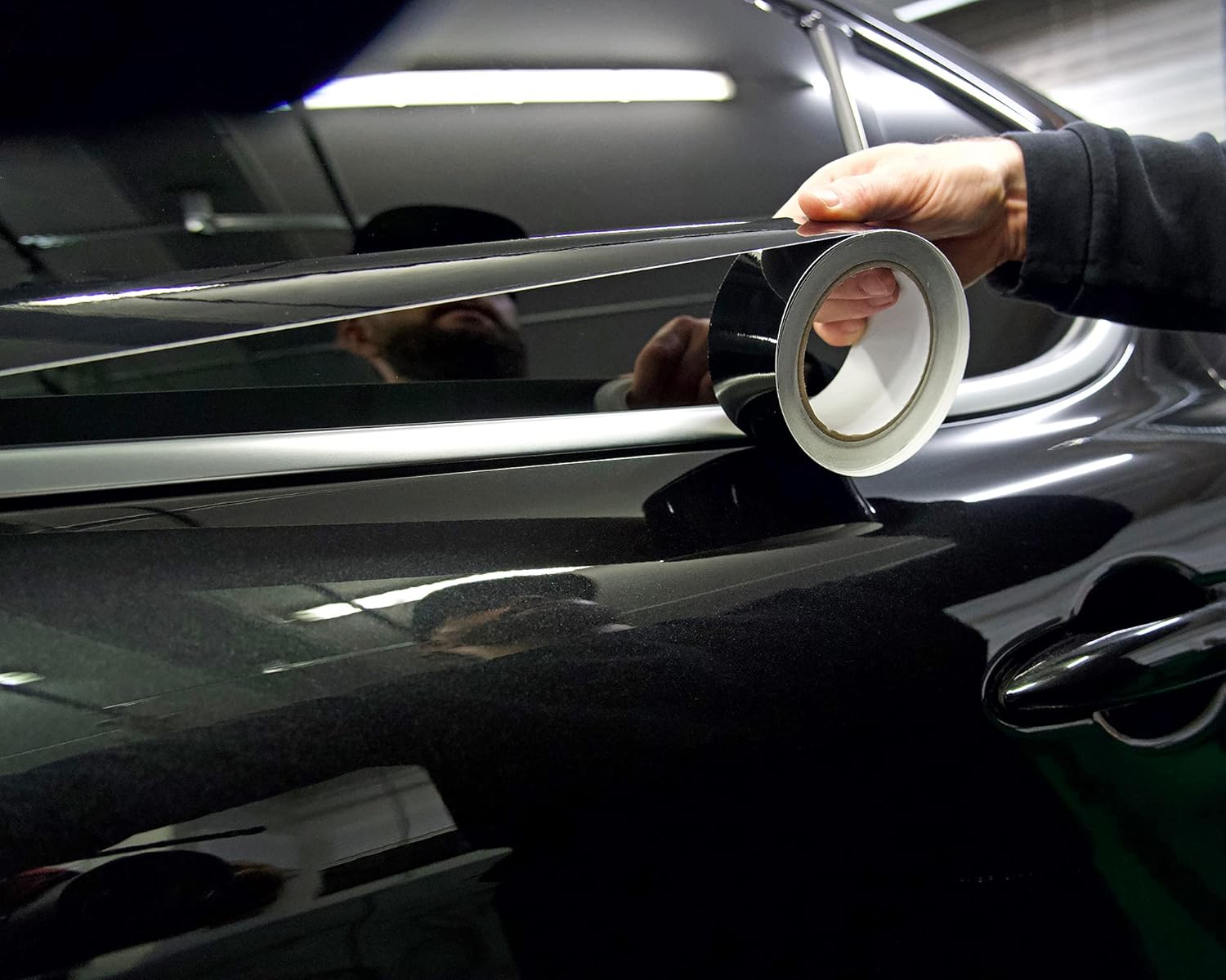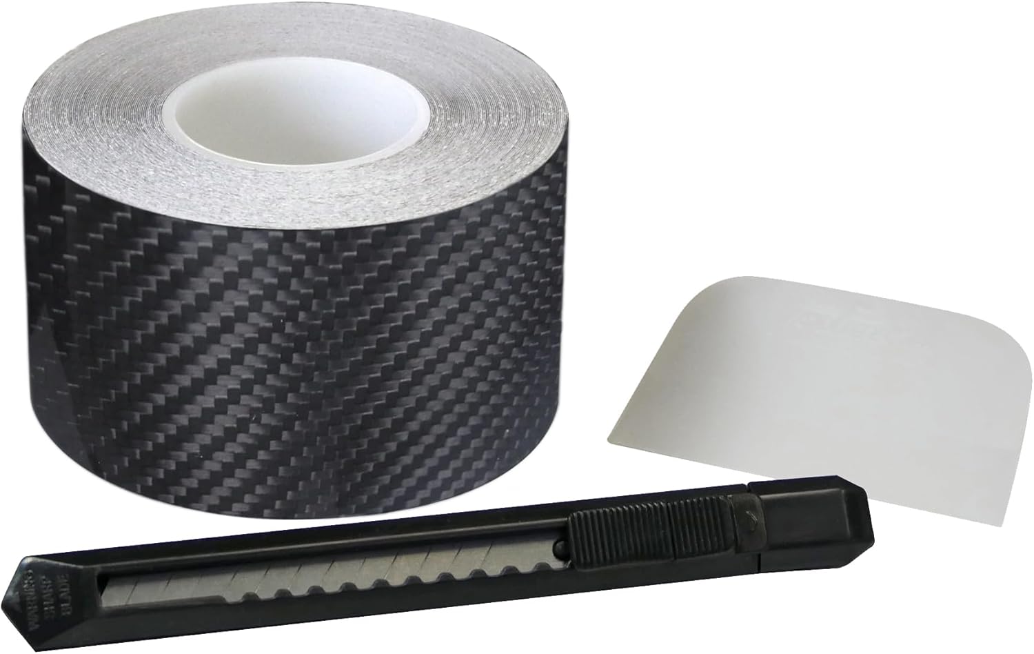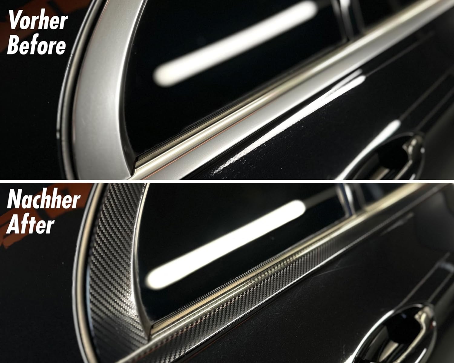 Комплект декоративни фолиа за кола Foliatec Chrome Out, за облепване с фолио, хромирани ленти за кола, гланциран карбон, 15 м x 5 см