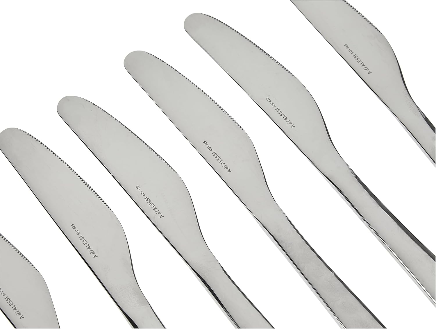 С течение на времето Alessi включва и други материали като порцелан, стъкло, дърво и пластмаса в продуктовата си гама, разработвайки специфичен производствен процес за всеки от тях. Дори за външно производство, извън фабриката в Крузинало, насоките на Alessi гарантират същите високи стандарти за качество, както при вътрешното производство, като винаги балансират техническата и индустриалната сложност с внимание към ръчно изработените детайли.