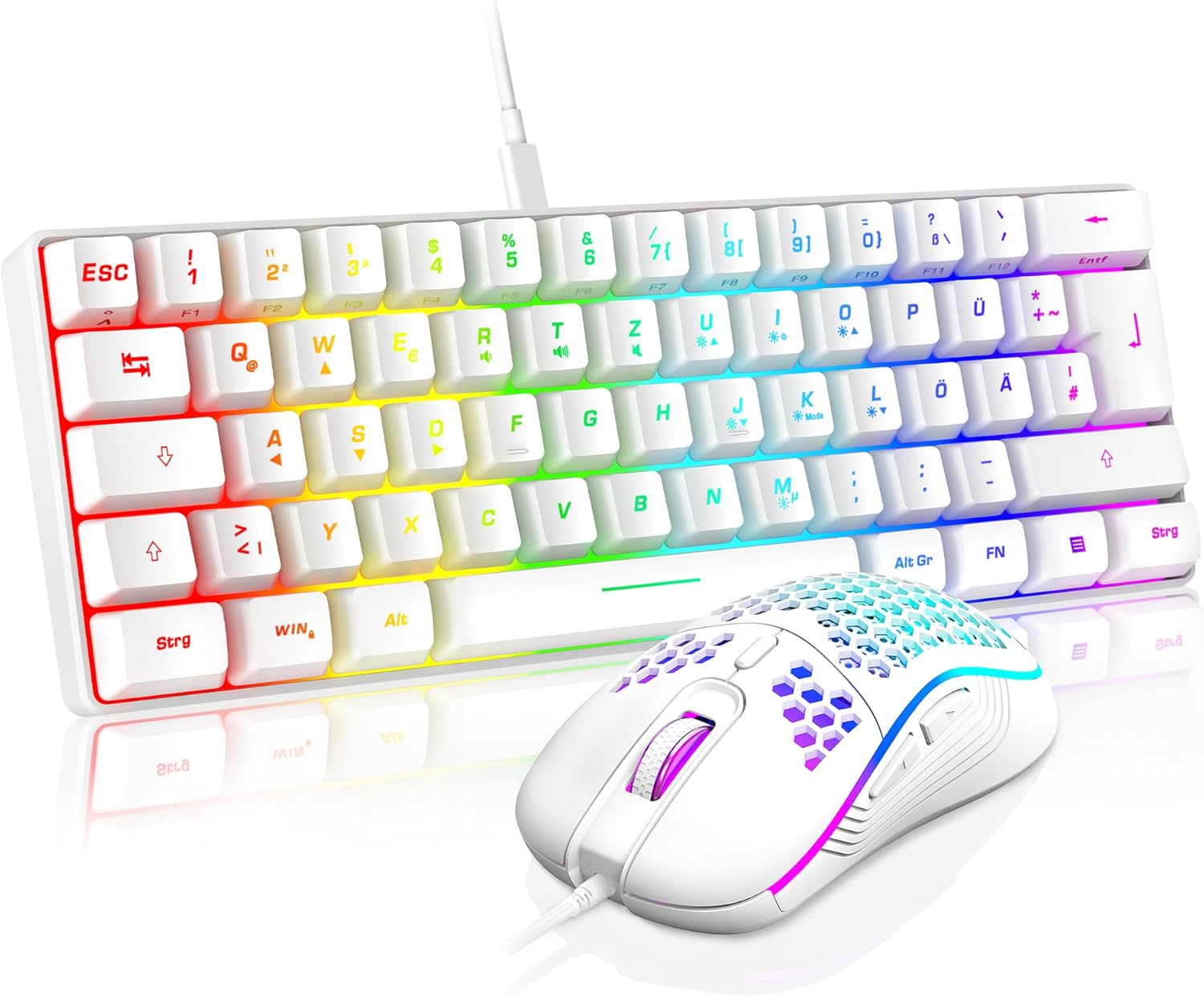 Комплект геймърска клавиатура и мишка RedThunder 60% RGB с кабел, 62 клавиша, немска подредба, 7200 DPI ултракомпактна мини мишка, оптична ергономична геймърска мишка с 6 бутона за PC, Mac, PS5, Xbox Gamer