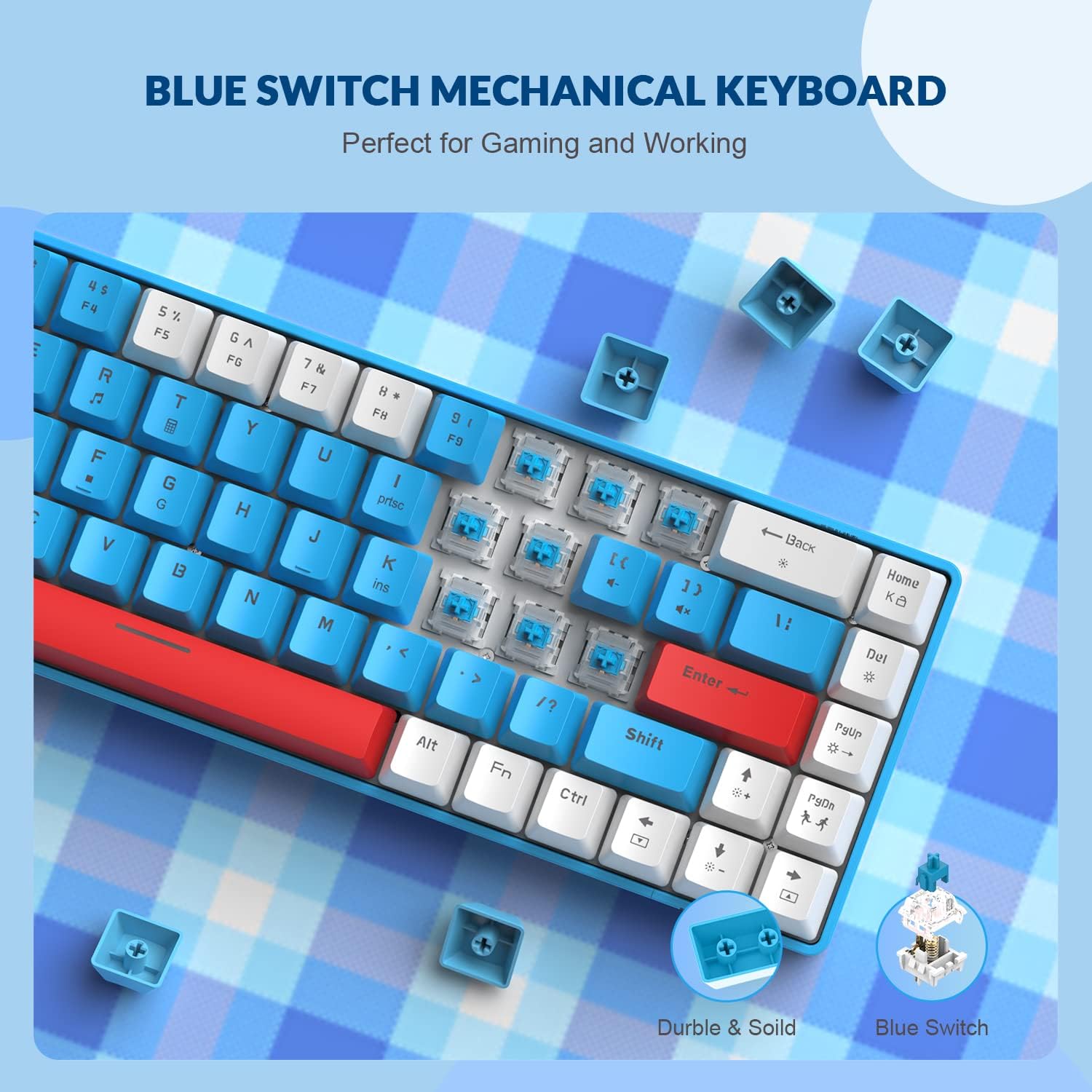 • Компактна клавиатура с 60% подредба: 68-клавишната подредба има отделни клавиши със стрелки, което е най-перфектният и практичен размер на клавиатурата от 60%. 60% клавиатурата има 100% стандартни функции и спестява повече място на бюрото, за игри, офис и домашна употреба. Пълна анти-ghosting, ергономичен дизайн на градуираните клавиши.