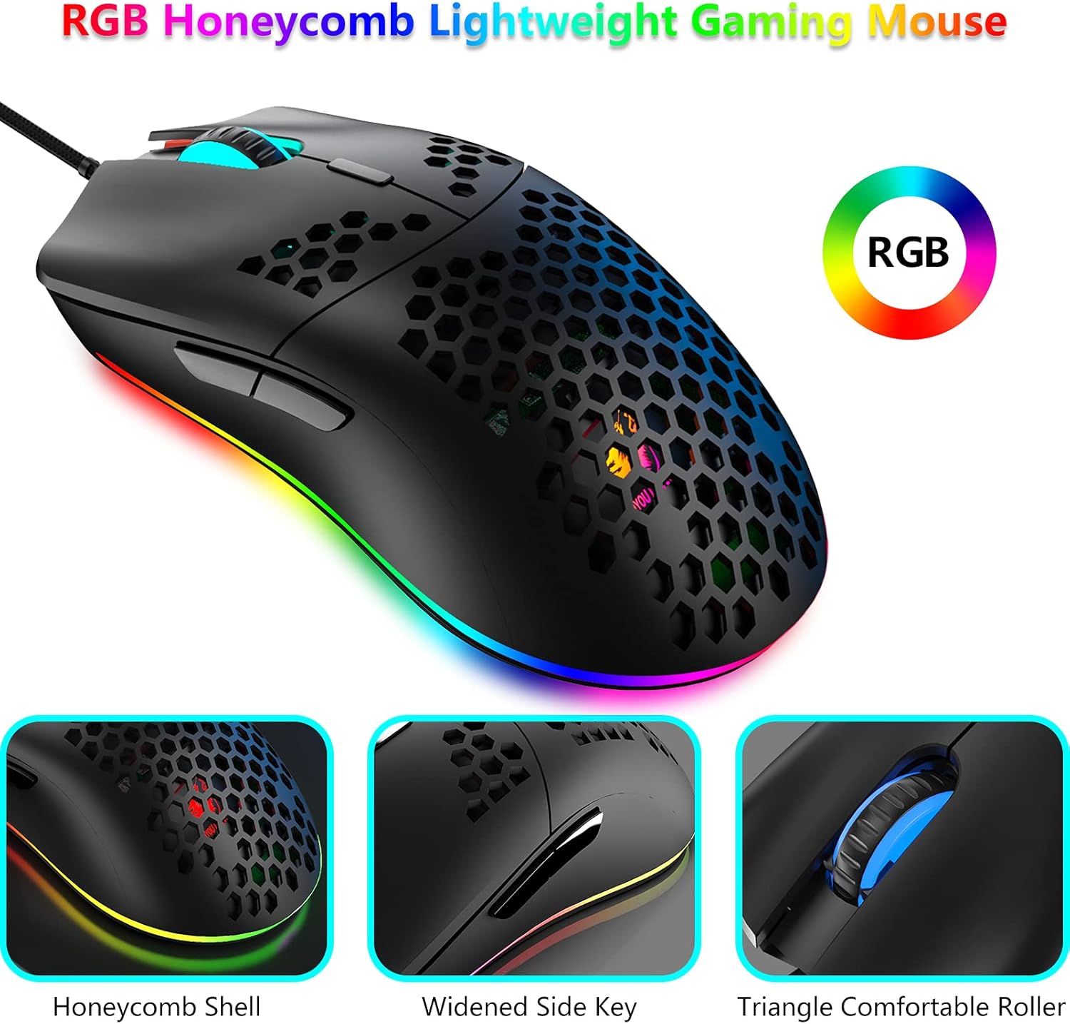 • Лека мишка тип „пчелна пита“: дизайн с куха форма на пчелна пита, теглото на мишката е само 87 грама, професионалният дизайн значително намалява теглото на мишката, прави мишката по-гъвкава за работа и намалява максимално умората на ръката при продължителна употреба. Изработена от висококачествен ABS материал, екологична и не произвежда вредни вещества. Plug and play, дължина на USB кабела: 1,7 м, дългият кабел прави движението на мишката по-гъвкаво.
