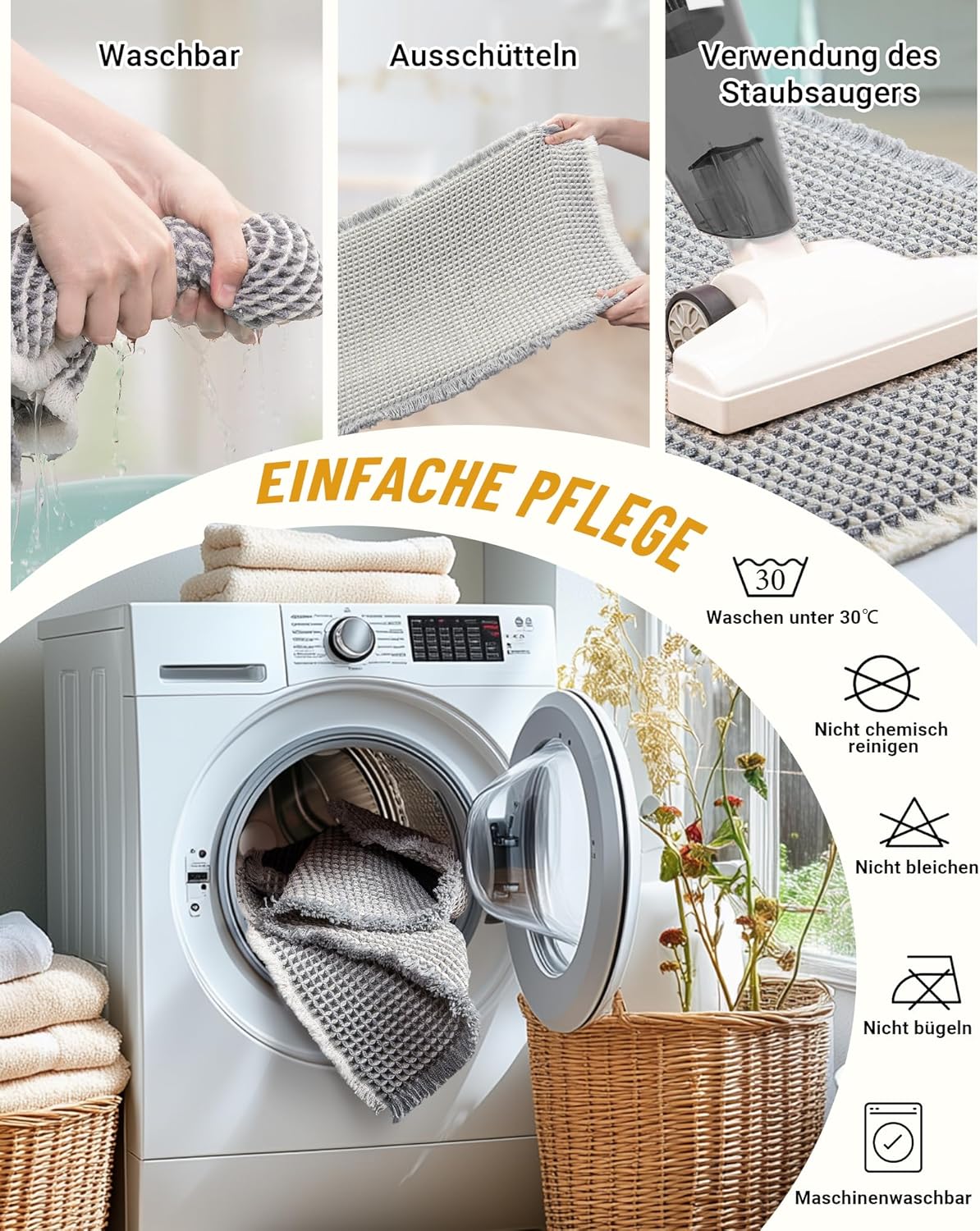 • Практична помощ за всеки ден: лесна поддръжка чрез машинно пране (студена вода, деликатна програма). Като алтернатива, просто изтръскайте или използвайте прахосмукачка - идеално за почистване през уикенда!