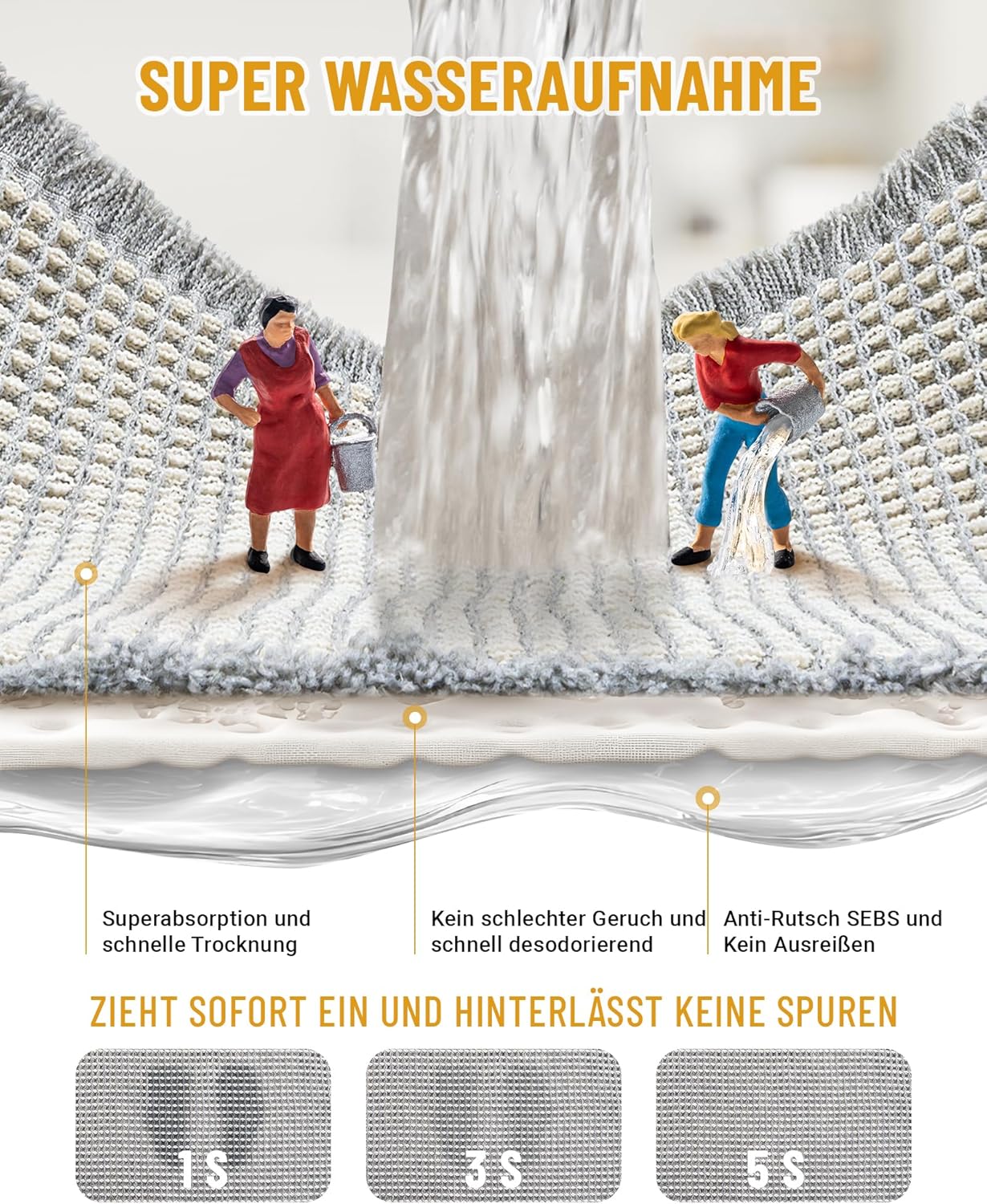 • Светкавично бързо съхнене: двойна дълбока вафлена текстура + специална прежда абсорбира водата незабавно. Поддържа пода сух и удължава живота му.