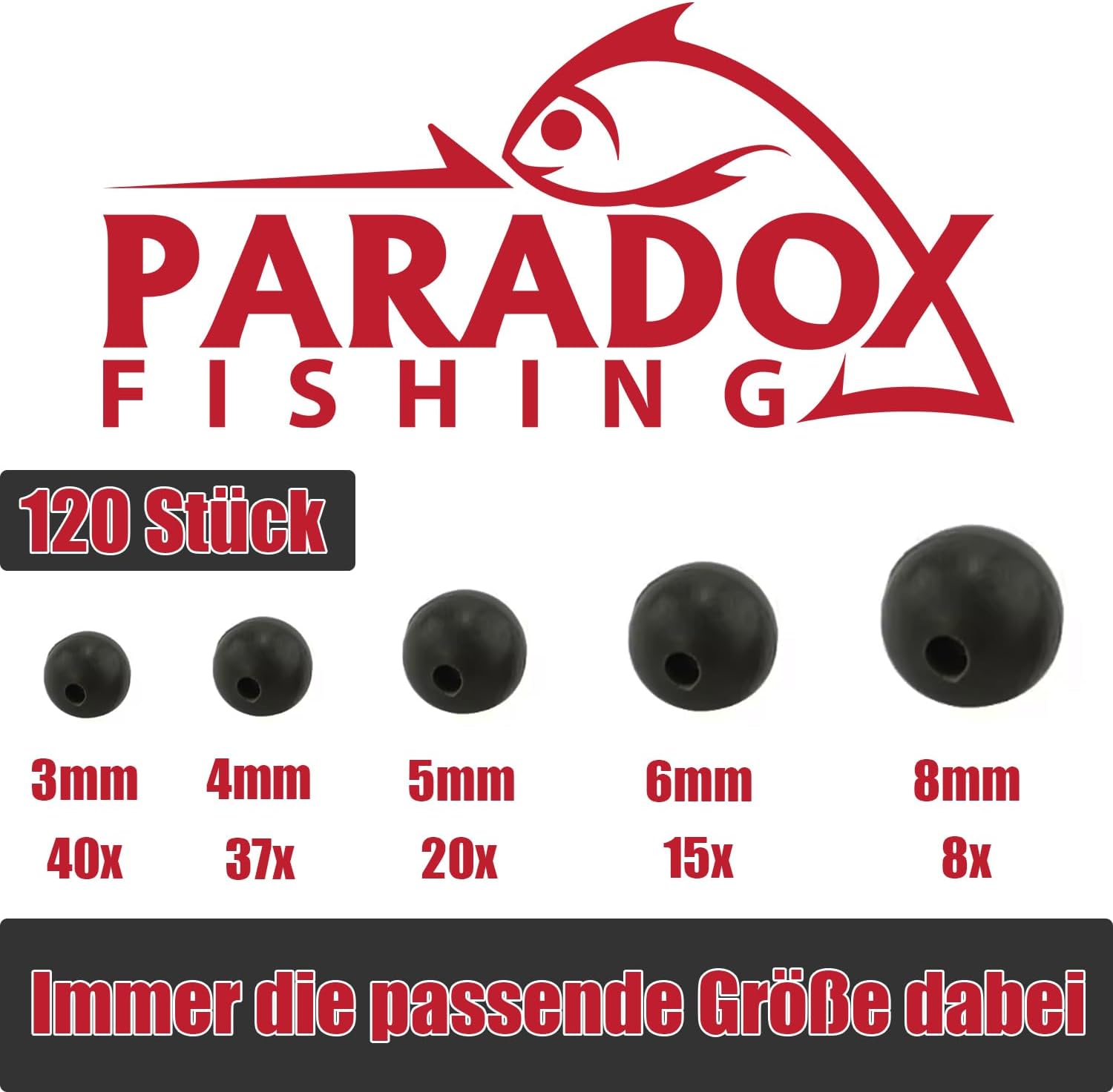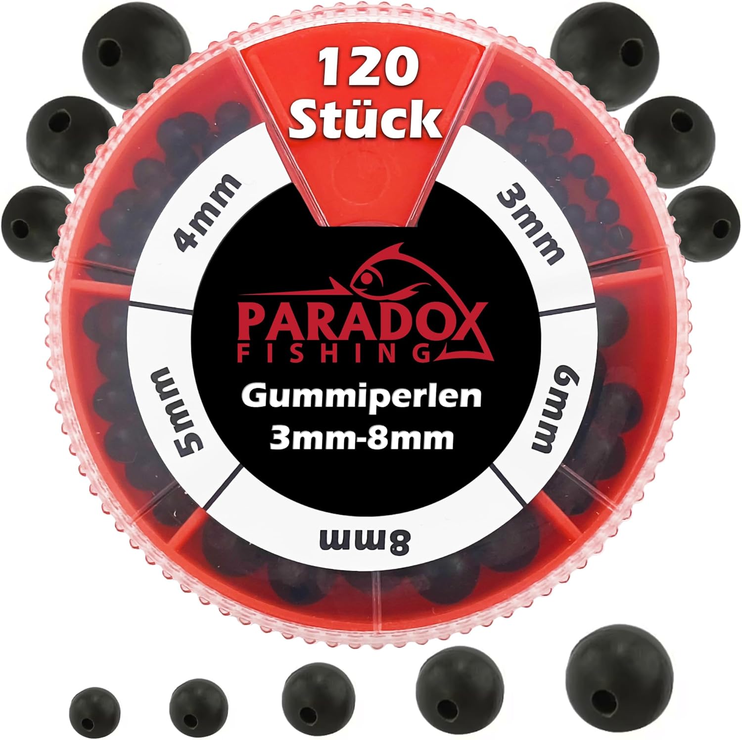 Комплект гумени мъниста 3 мм - 8 мм I 120 броя I Гумени мъниста Риболовни запушалки Мъниста за риболовни мъниста Риболовни аксесоари - Перфектни с гумена запушалка Риболов