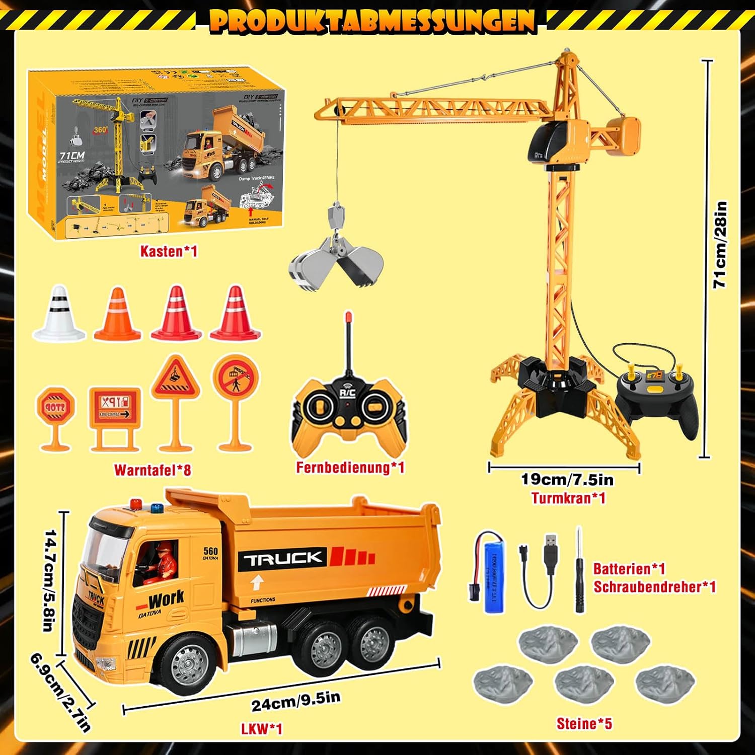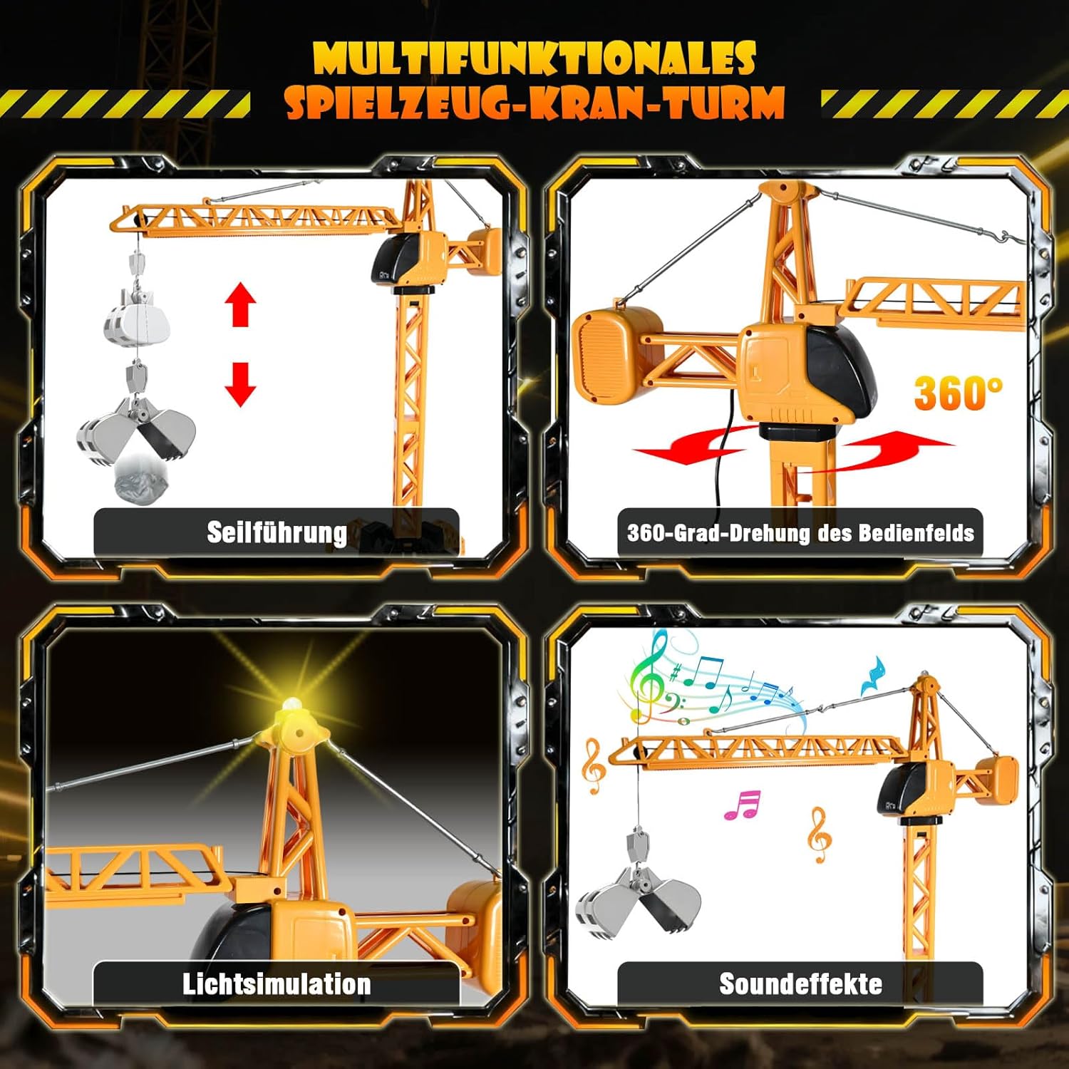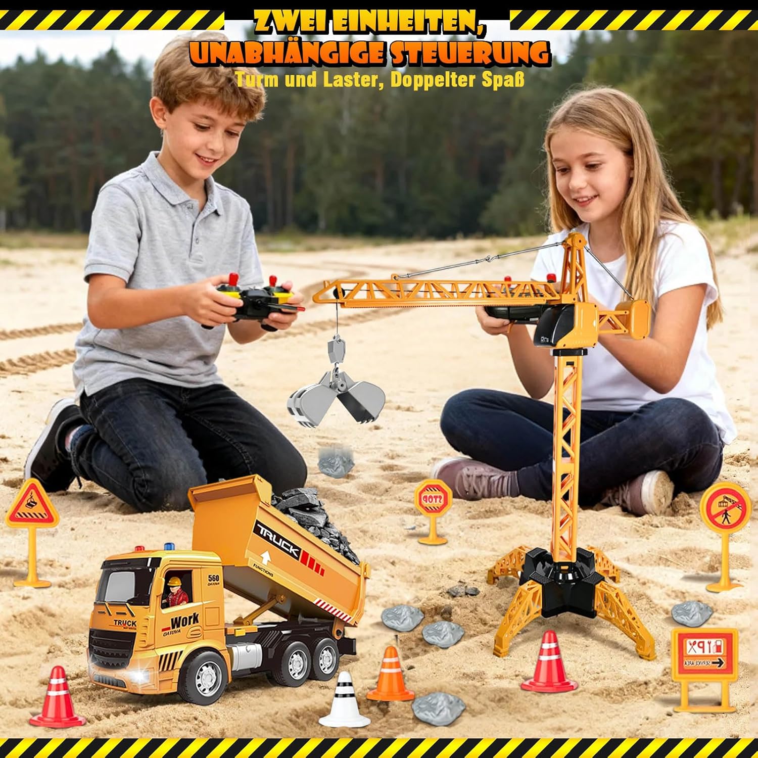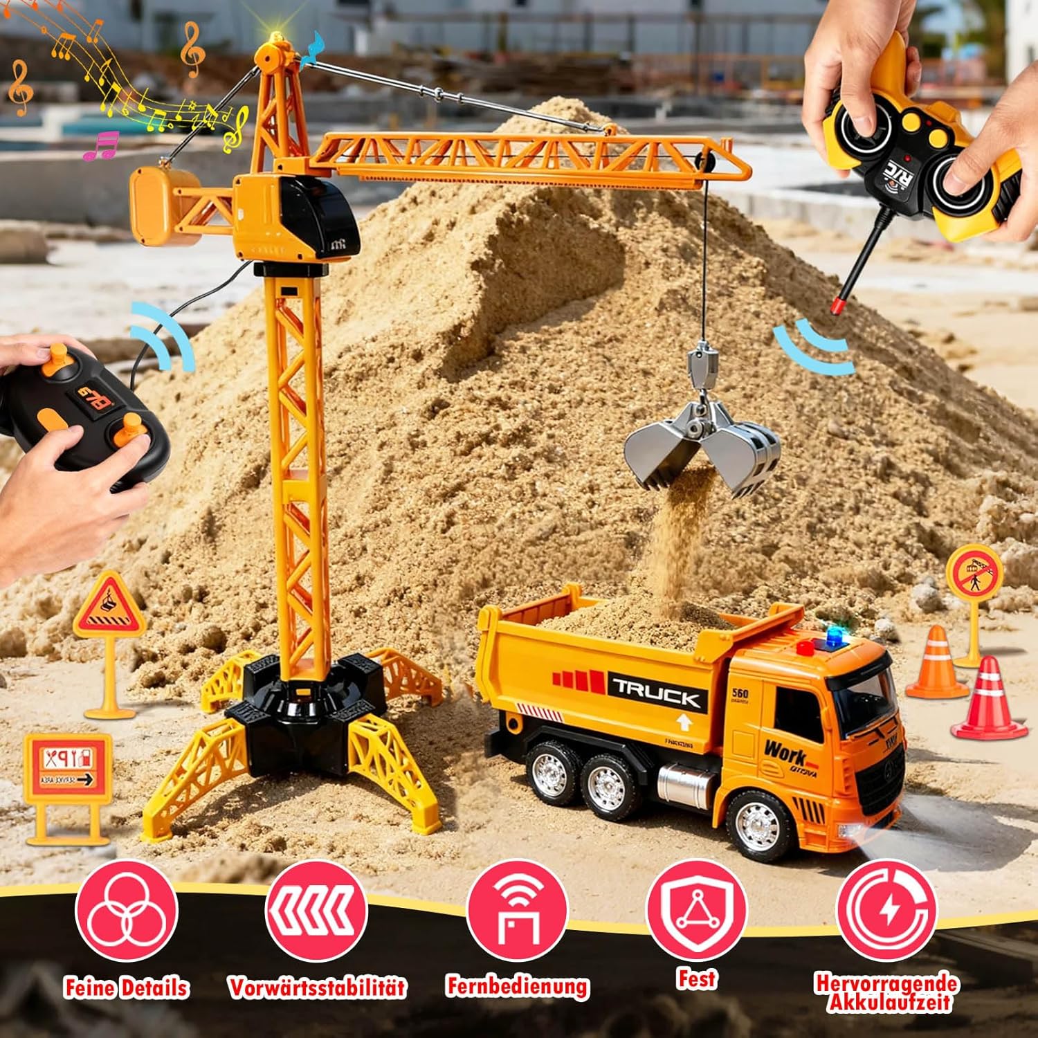 Играчка кулокран с дистанционно управление - строете, повдигайте и управлявайте като професионалист! 680° въртене и прецизно управление: Напълно функционална с 6 канала - повдигайте, спускайте и премествайте крана като на истинска строителна площадка. Със светлина и звук: Реалните звуци на кран и светлинните ефекти правят игровото изживяване по-живо. БЕЗОПАСНА И ПОДХОДЯЩА ЗА ДЕЦА: Подходяща за деца над 3 години, здрава конструкция, 2.4GHz дистанционно управление за безпроблемна игра. РАЗВИЙТЕ ВЪОБРАЖЕНИЕТО: Идеална за пресъздаване на сцени от строителна площадка - самостоятелно или с приятели. Съдържание на кутията: 75 см кулокран × 1 камион × 1 дистанционно управление (батериите не са включени)