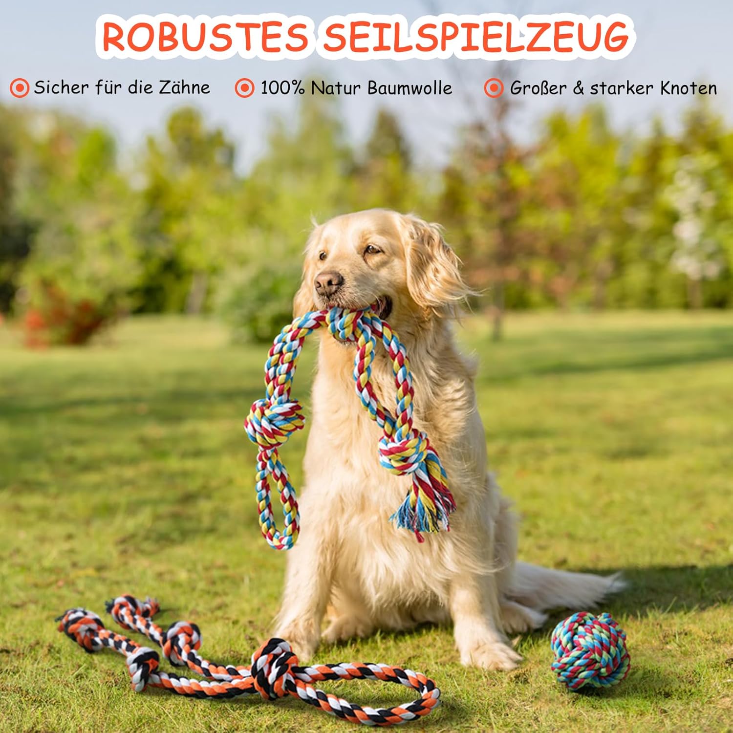 • Безопасна играчка за кучета с въже, изработена от 100% памук - Нашата играчка за дъвчене за кучета е изработена от 100% естествен памук, нетоксичен, безвкусен и по-безопасен. Това е най-безопасната играчка за кучета, която позволява на вашите кучета да дъвчат и играят. Докато кучетата ви се забавляват с играчките, тяхното здраве е на първо място.