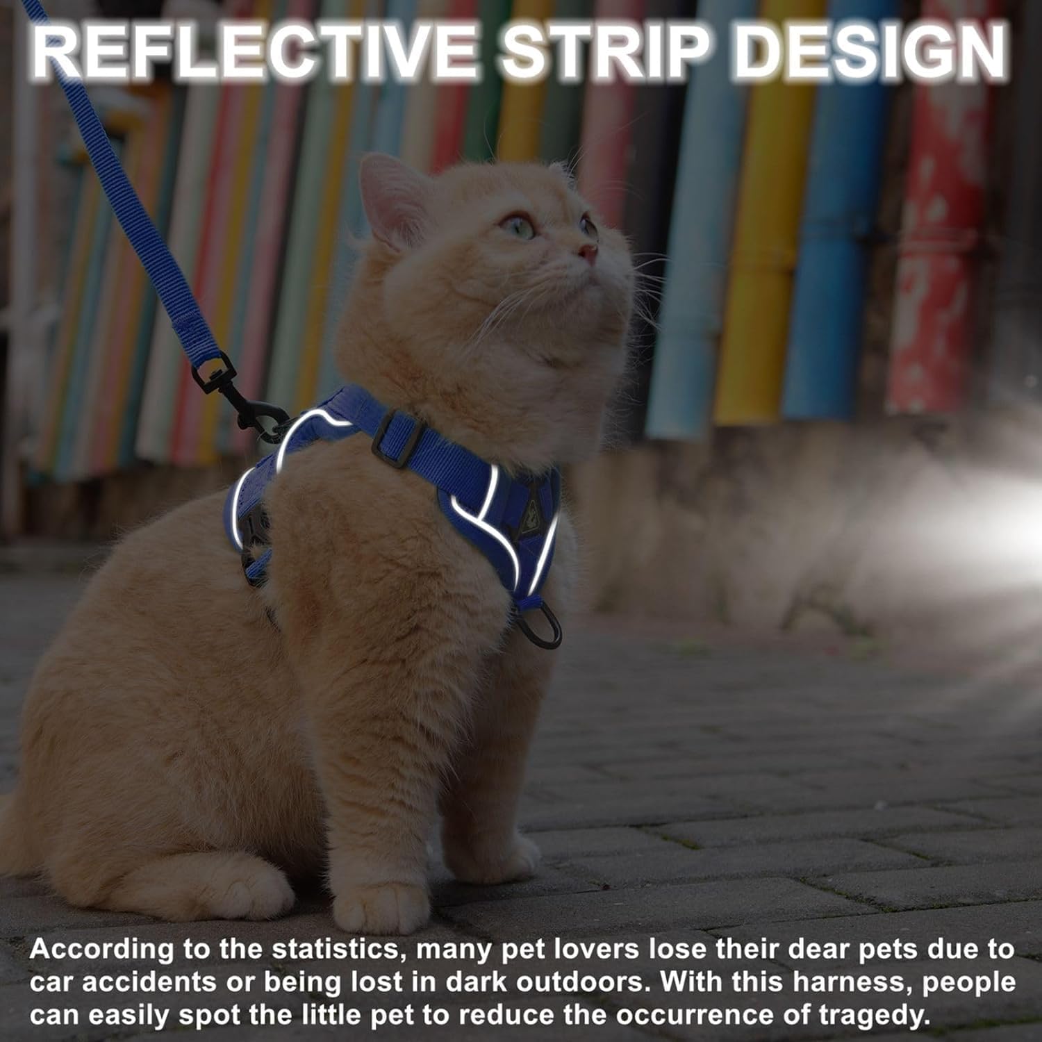 Комплект жилетка с каишка за малки кучета и големи котки, регулируемо яке с каишка, защитено от бягство, за дебели котки, разходки на открито, меко мрежесто палто със светлоотразителни ивици, XL син