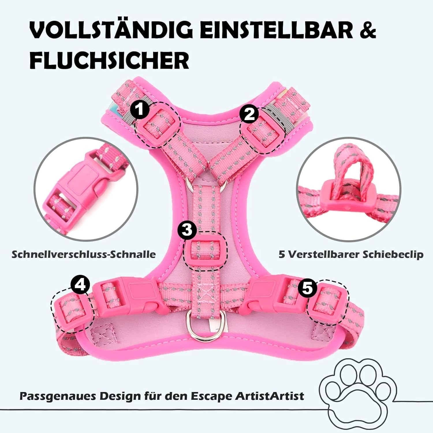• Комплект каишки против бягство на котка: регулира се според височината на котката, този регулируем жилетков колан за котки може да се регулира с мощни 5 регулируеми плъзгащи се щипки (2 за раменете + 2 за гърдите + 1 за гърба), подходящи за вашия гъвкав любител на бягството; 2 издръжливи катарами за бързо освобождаване и здрави D-образни пръстени са проектирани за по-безопасно затваряне и ефективно предотвратяват случайно бягство и загуба на котки по време на приключения на открито.