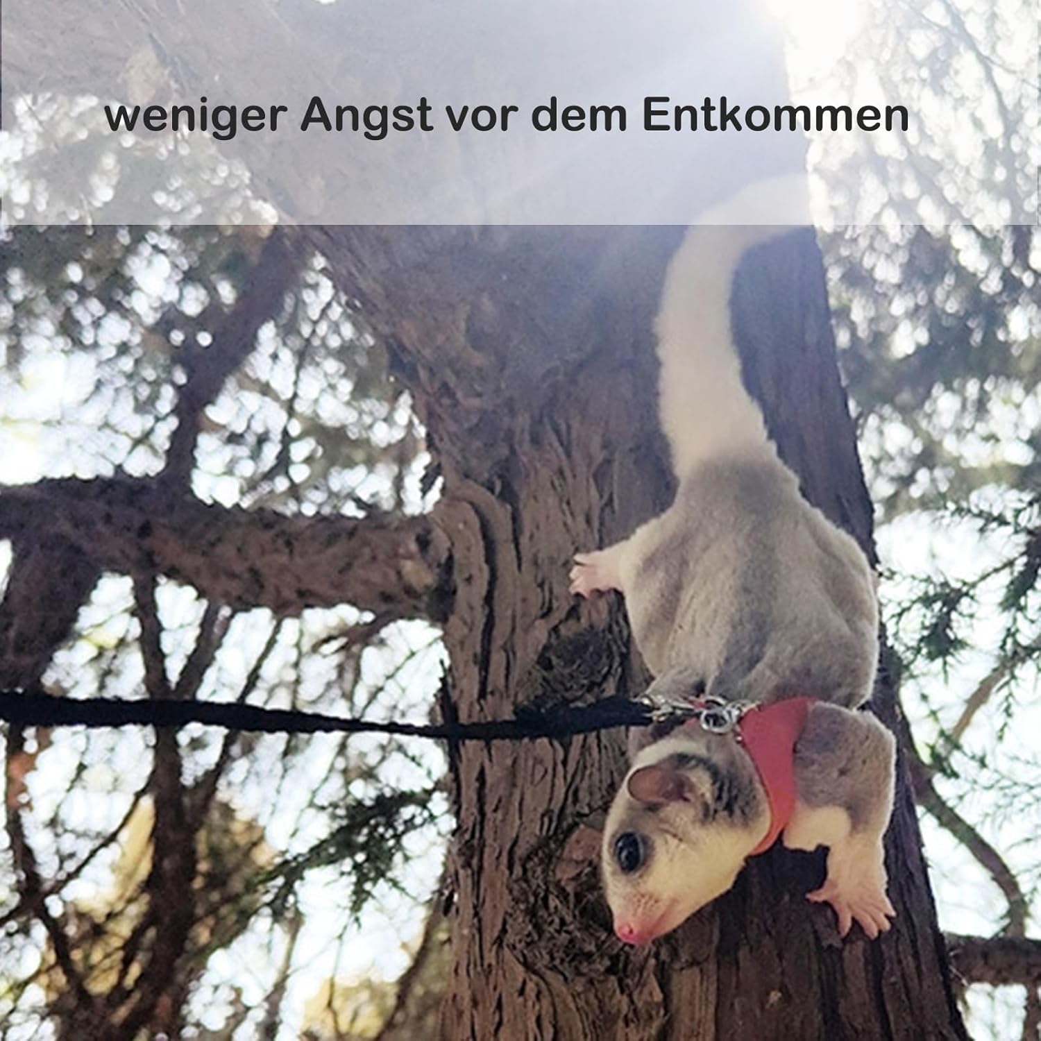 Представяме ви нашия комплект от 3 нагръдника и каишка за Sugar Glider, перфектният аксесоар за собственици на малки животни! Този комплект включва три размера нагръдници и каишка с дължина 1,6 метра, специално проектирана за Sugar Glider, катерица, хамстер, плъх и влечуги. Нашите нагръдници са изработени с най-голяма грижа и внимание към комфорта и безопасността на вашия пухкав приятел от издръжливи и висококачествени материали. Три варианта на нагръдника отговарят на различните нужди, докато вашият Sugar Glider расте, и предотвратяват изплъзването на домашния любимец от нагръдника по време на разходки или тренировки. Коженият материал минимизира риска малкият ви животин да ухапе нагръдника и гарантира неговата безопасност, докато под вашето зорко око има свободата да изследва околностите си. Нашият комплект нагръдник и каишка е не само практично решение за разходка на вашите домашни любимци, но служи и като помощно средство за обучение. С тренировъчната жилетка с каишка можете да насочвате вашия Sugar Glider, катерица, хамстер, плъх, птица или влечуго по контролиран начин, да ги учите на правилно поведение и да укрепвате връзката си с тях.