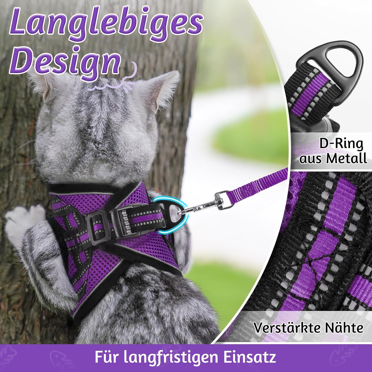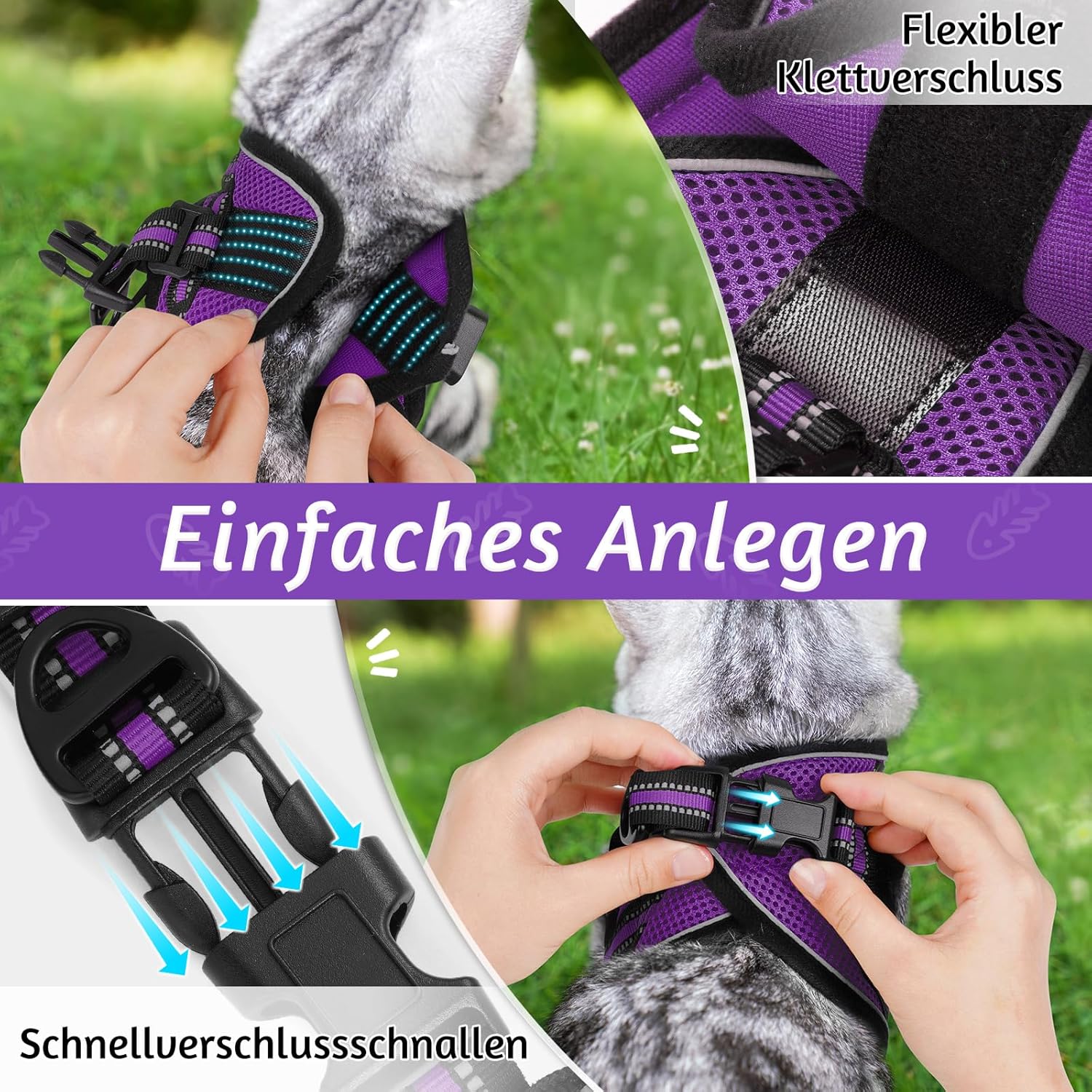 ПАСВА ПЕРФЕКТНО ЗА ВРАТА 17-21 СМ ГЪРДЕН КРЪГ 23-28 СМ Моля, измерете точно котката си и внимателно изберете нагръдник според таблицата с размери. За по-добро прилягане на вашето очарователно котенце се препоръчва да изберете по-голям размер. Комплектът включва: 1 x нагръдник за котки и 1 x найлонова каишка (149,9 см). Създаден за комфорт и функционалност, дизайнът на жилетката прави този нагръдник лесен за поставяне и сваляне. А регулируемата каишка създава перфектно прилягане за вашата котка с известно пространство за растеж. (Съвети: моля, дайте на котката си известно време да се запознае с този нагръдник за първи път)