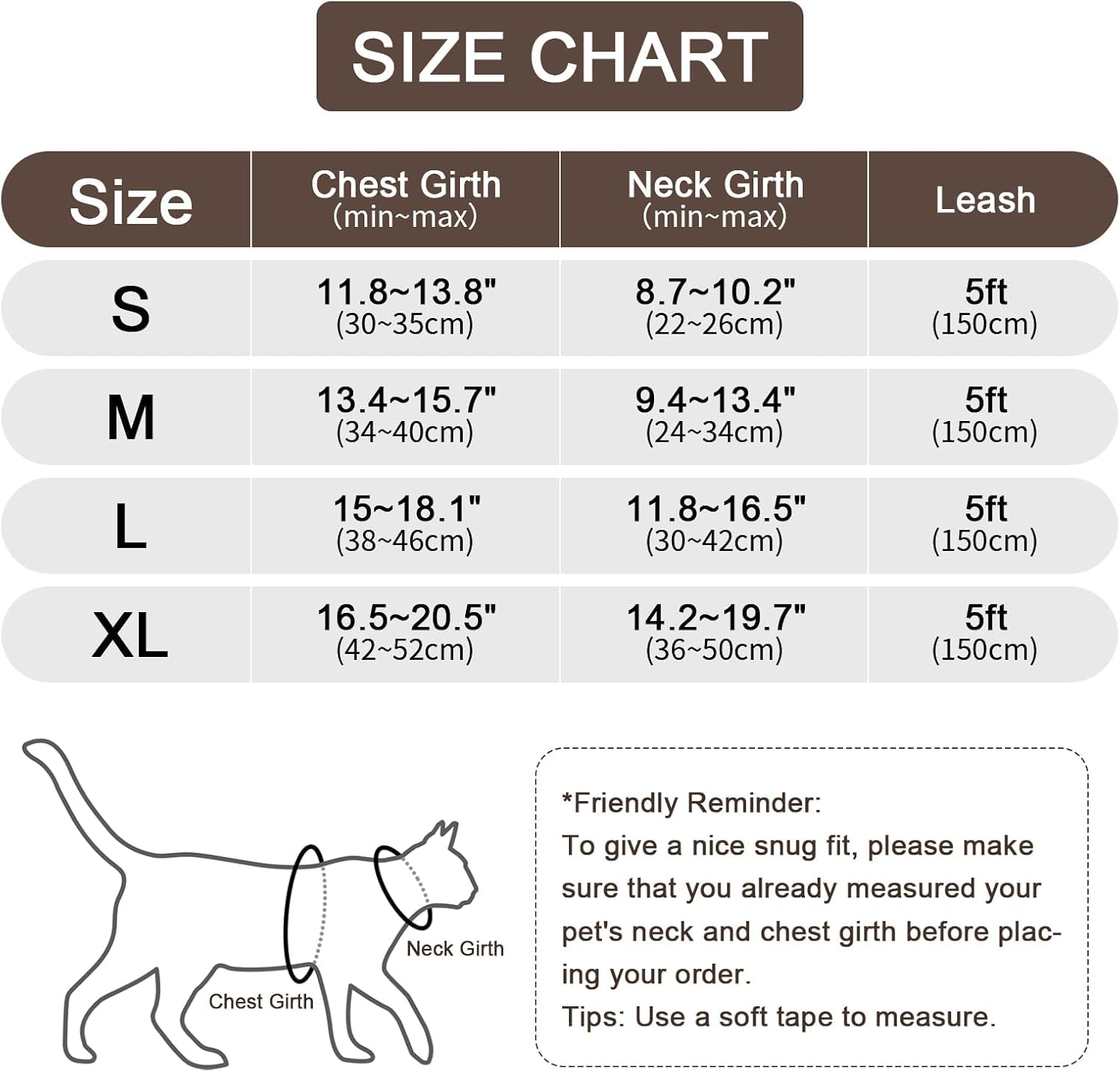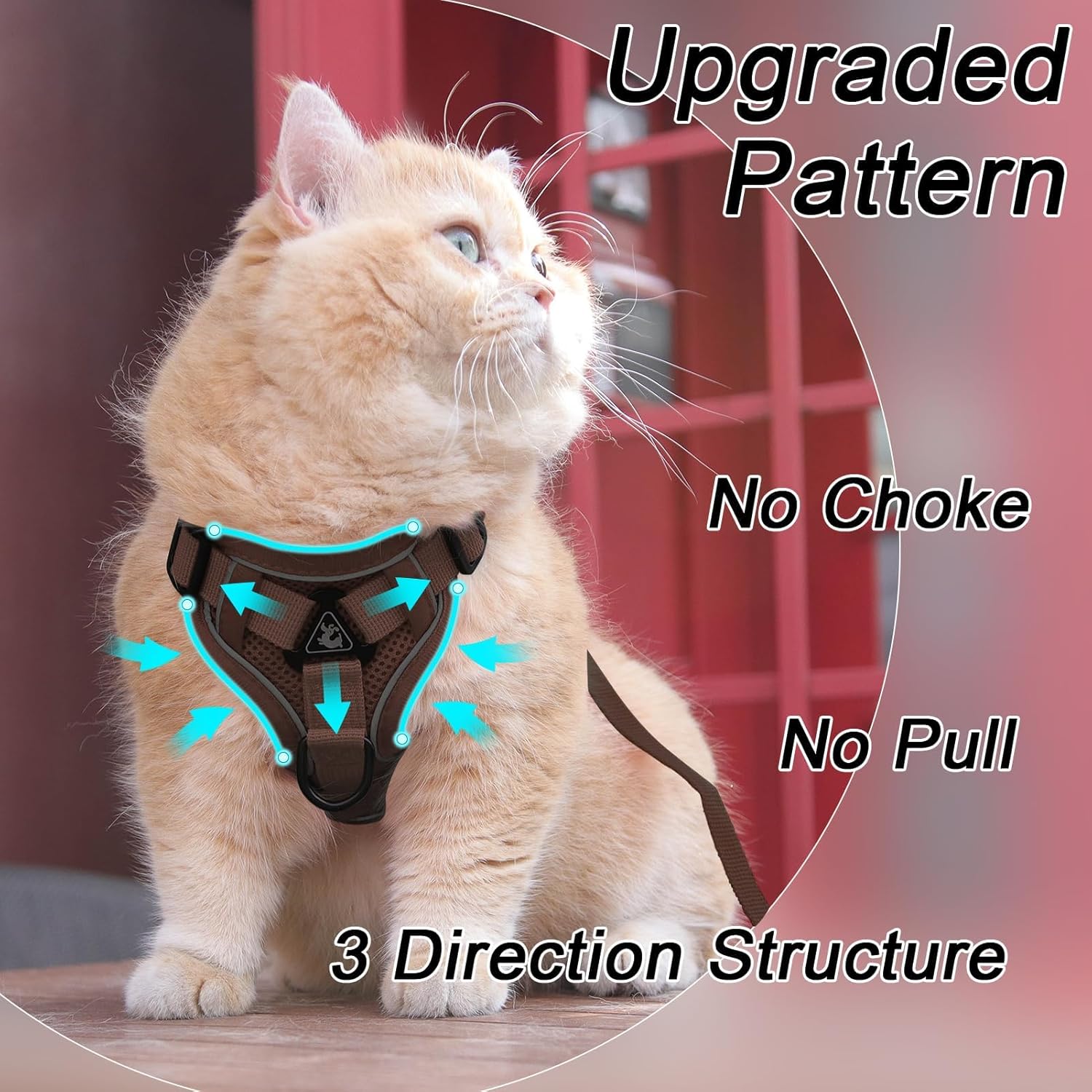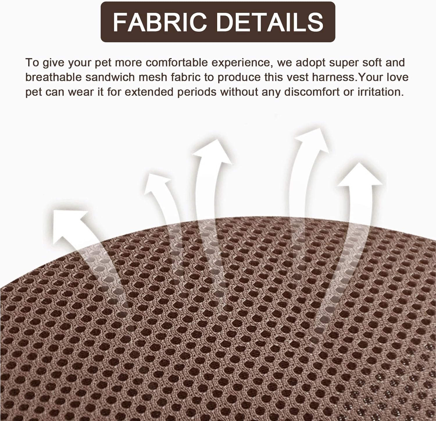 Комплект каишки за малки кучета и големи котки, котешки нагръдник, защитен от бягство, регулируемо котешко яке с каишка за дебели котки, меко мрежесто палто със светлоотразителни ивици, XL кафяво