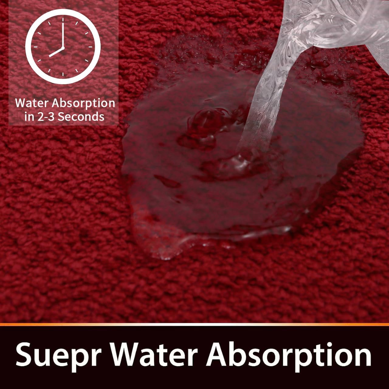 Плюшена и изключително абсорбираща постелка за баня поддържа подовете на банята ви сухи; Висококачественият микрофибърен материал бързо и ефективно улавя и абсорбира излишната вода и влага от ваната, душа и мивката.