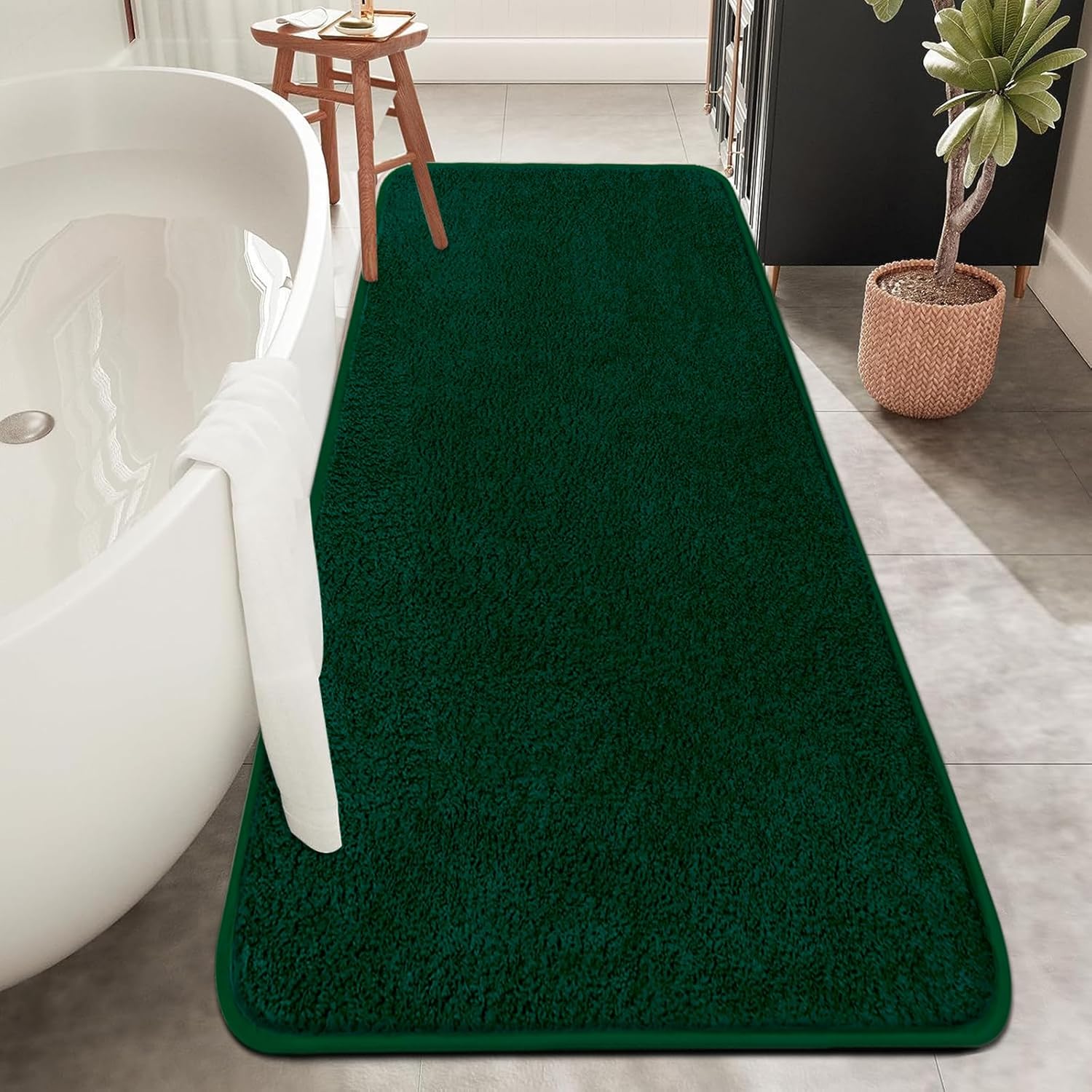 Плюшена и изключително абсорбираща постелка за баня поддържа подовете на банята ви сухи; Висококачественият микрофибърен материал бързо и ефективно улавя и абсорбира излишната вода и влага от ваната, душа и мивката.