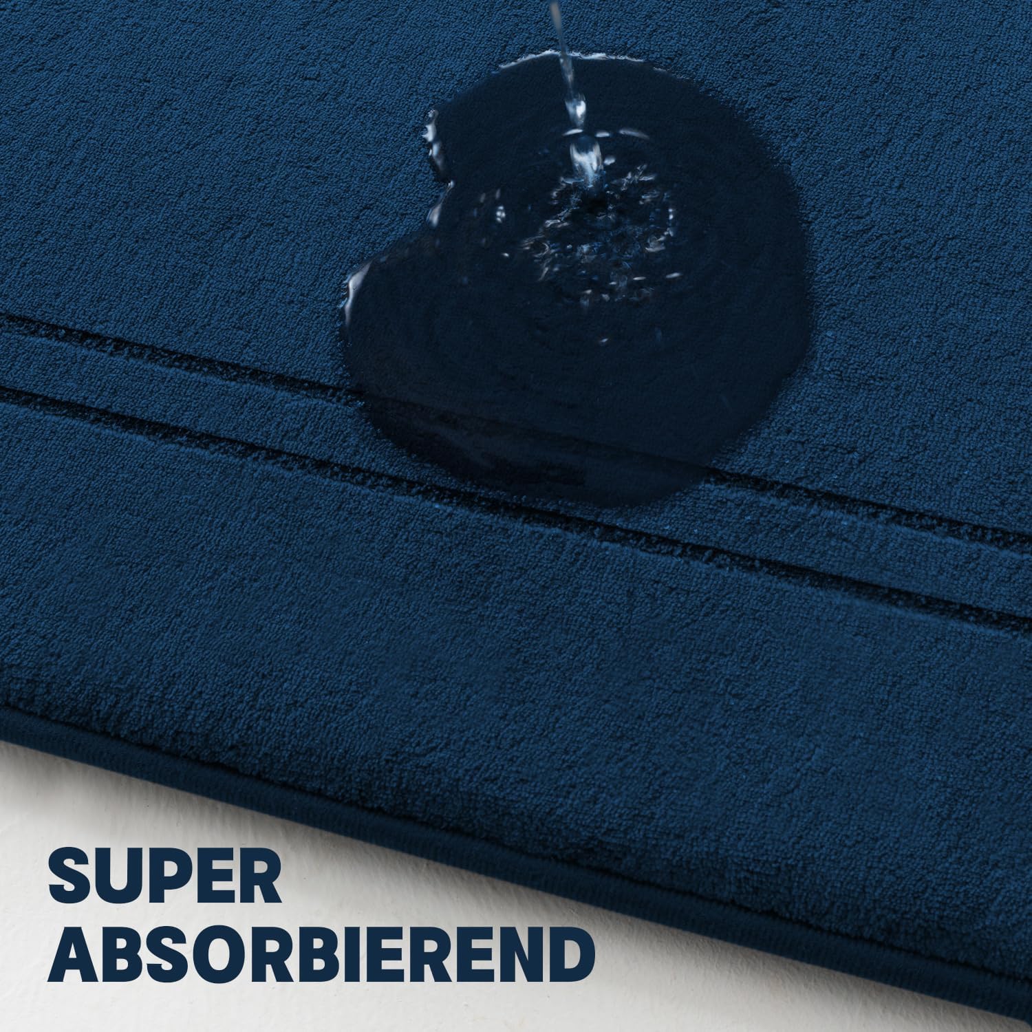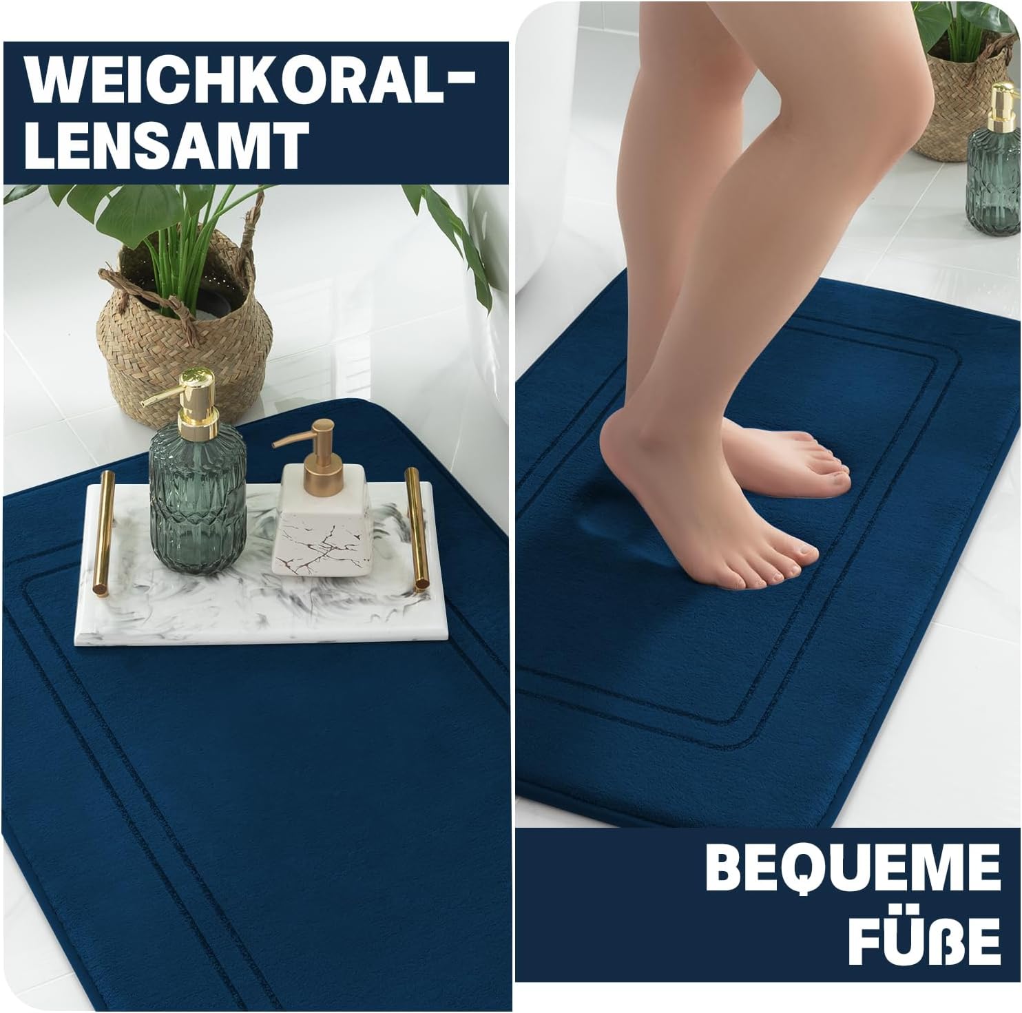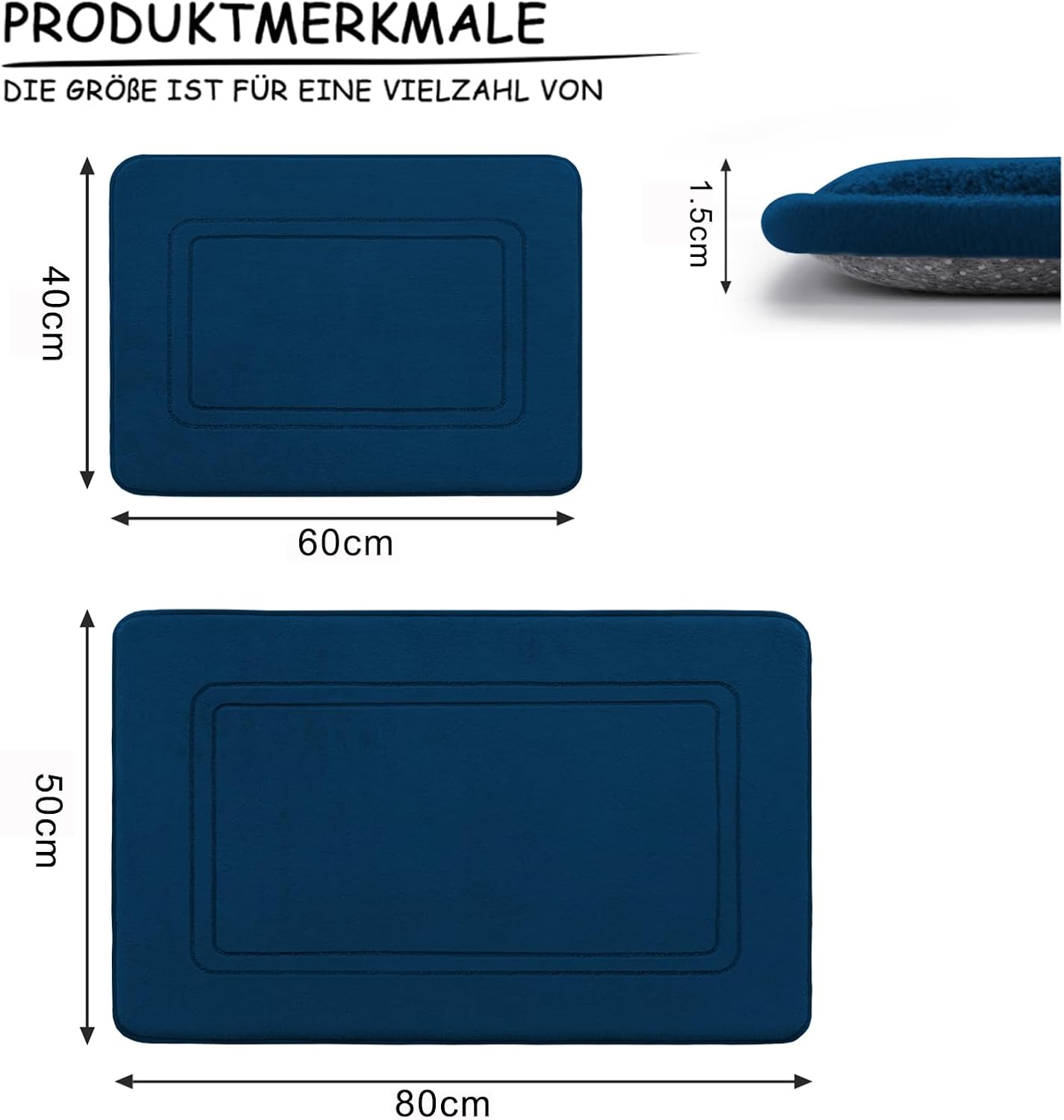 Комплект килими за баня Chakme, 2 части, мека постелка за баня от мемори пяна, неплъзгаща се, може да се пере, комплект килими за баня за тоалетна, душ и вана, тъмносиньо