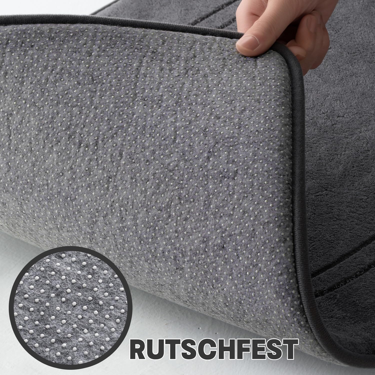 • Комплекти килими за баня: комплект тъмносиви килими за баня от 3 части, включително постелки с размери 43 см x 61 см и 51 см x 81 см, U-образен килим за плот 51 см x 61 см. В този магазин ще намерите комплект килими за баня на добри цени. Идеални за баня, тоалетка, вила, главна баня, детска баня, хол и т.н.
