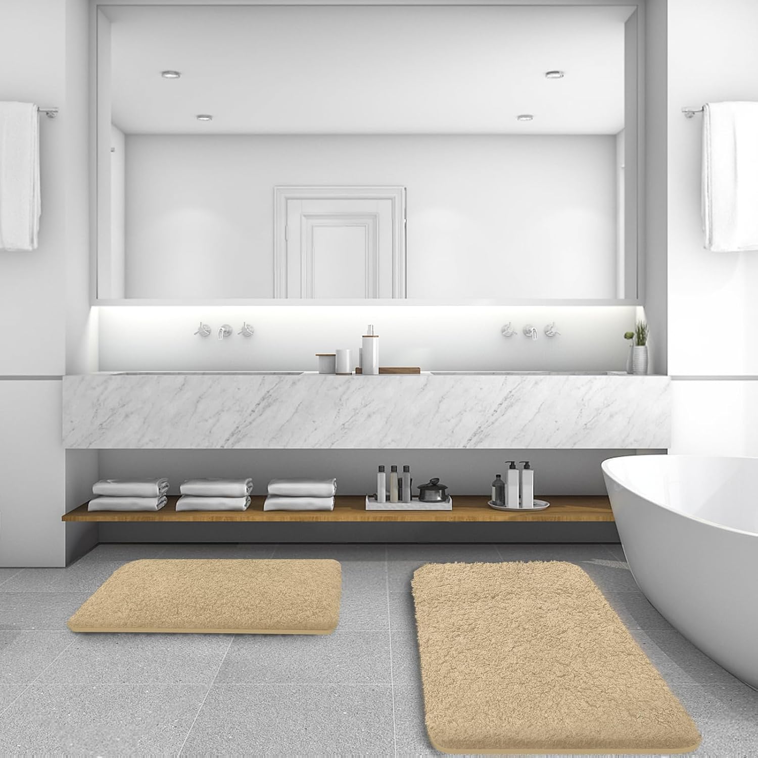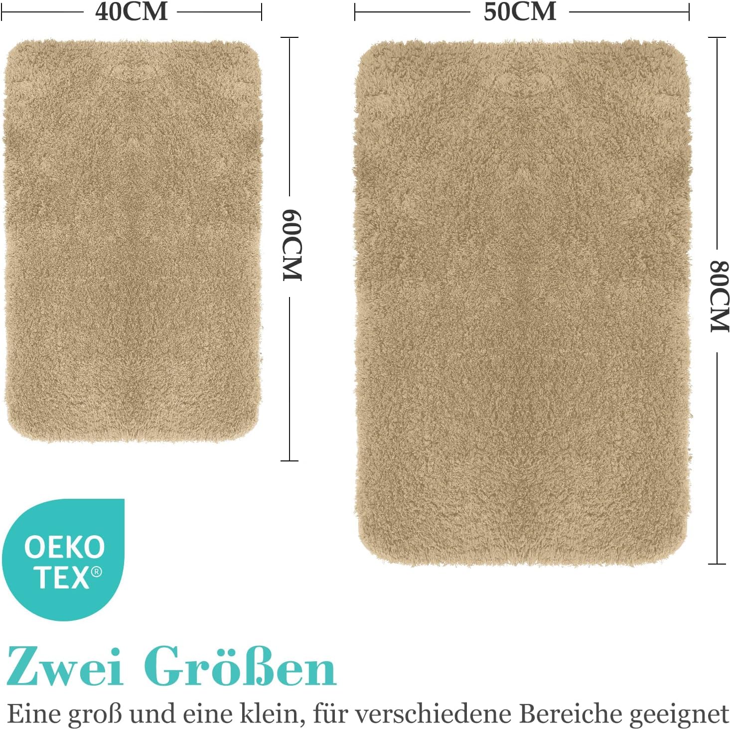 Комплект килими за баня Digiroot от 2 броя, противоплъзгаща се постелка за баня, която може да се пере, абсорбираща и бързосъхнеща постелка за душ, прежда, кичури, много мека, 40 x 60 см, 50 x 80 см, бежова