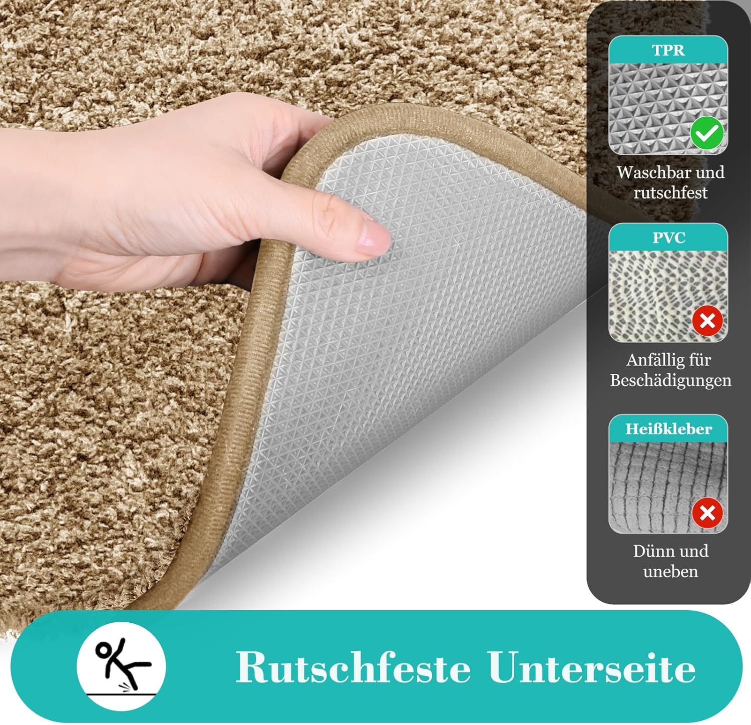• TPR противоплъзгаща подложка: гърбът е снабден с противоплъзгаща TPR конструкция, която държи постелките за баня здраво на място. Тя е по-издръжлива от PVC материала и по-малко податлива на повреди. В сравнение с материала с горещо лепило, тя е по-дебела и по-гладка. (Моля, уверете се, че подът е сух, преди да поставите постелката.)
