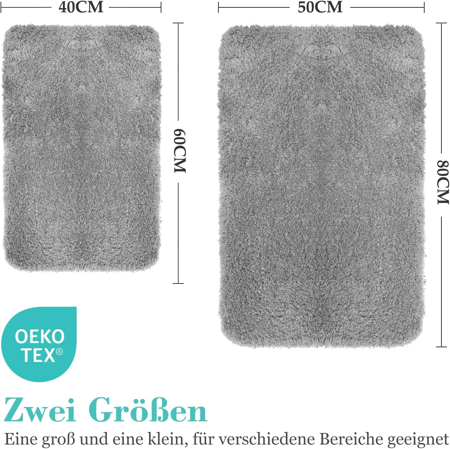 Комплект килими за баня Digiroot от 2 броя, противоплъзгаща се постелка за баня, която може да се пере, абсорбираща и бързосъхнеща постелка за душ, прежда, кичури, много мека, 40 x 60 см, 50 x 80 см, сива