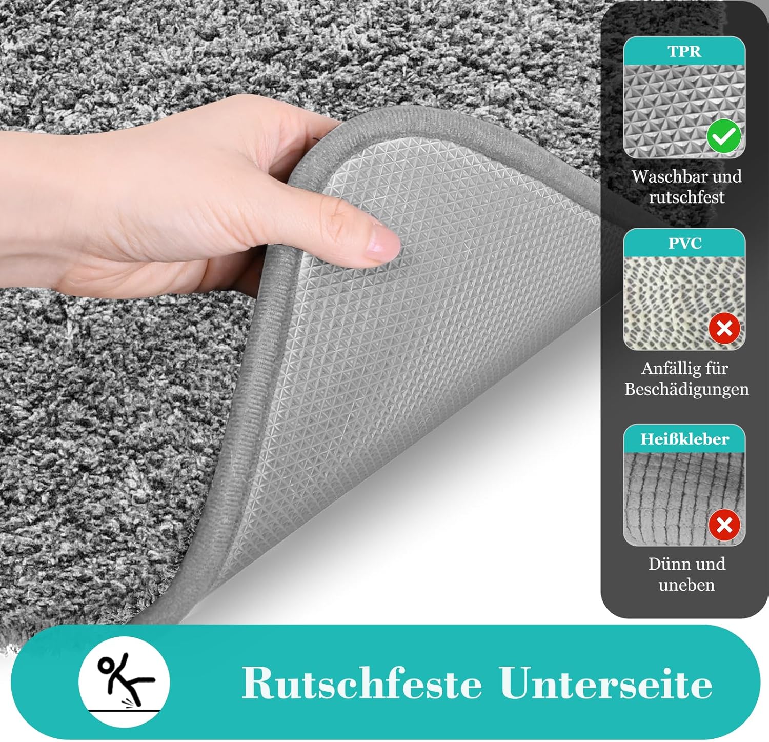• TPR противоплъзгаща подложка: гърбът е снабден с противоплъзгаща TPR конструкция, която държи постелките за баня здраво на място. Тя е по-издръжлива от PVC материала и по-малко податлива на повреди. В сравнение с материала с горещо лепило, тя е по-дебела и по-гладка. (Моля, уверете се, че подът е сух, преди да поставите постелката.)