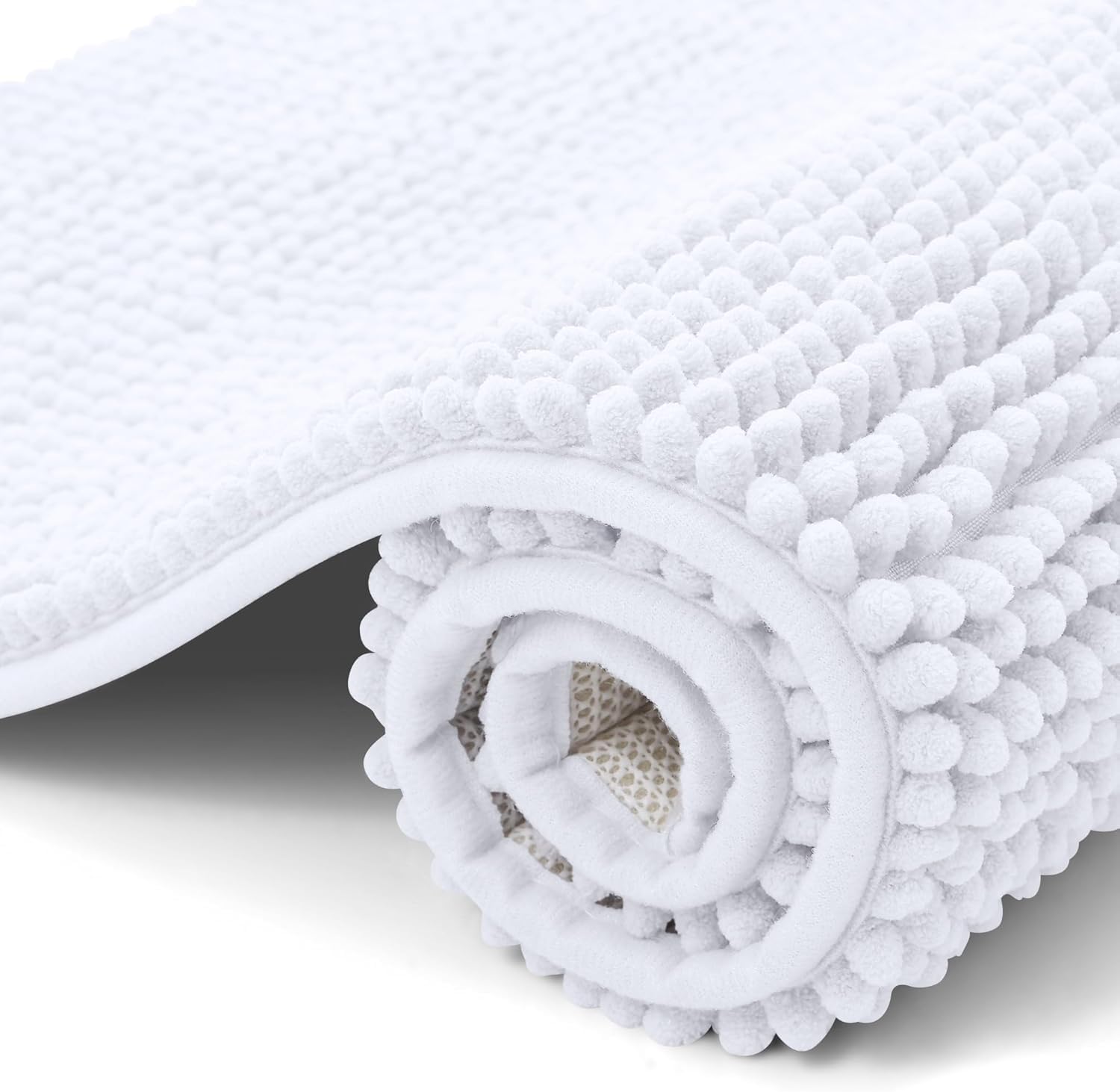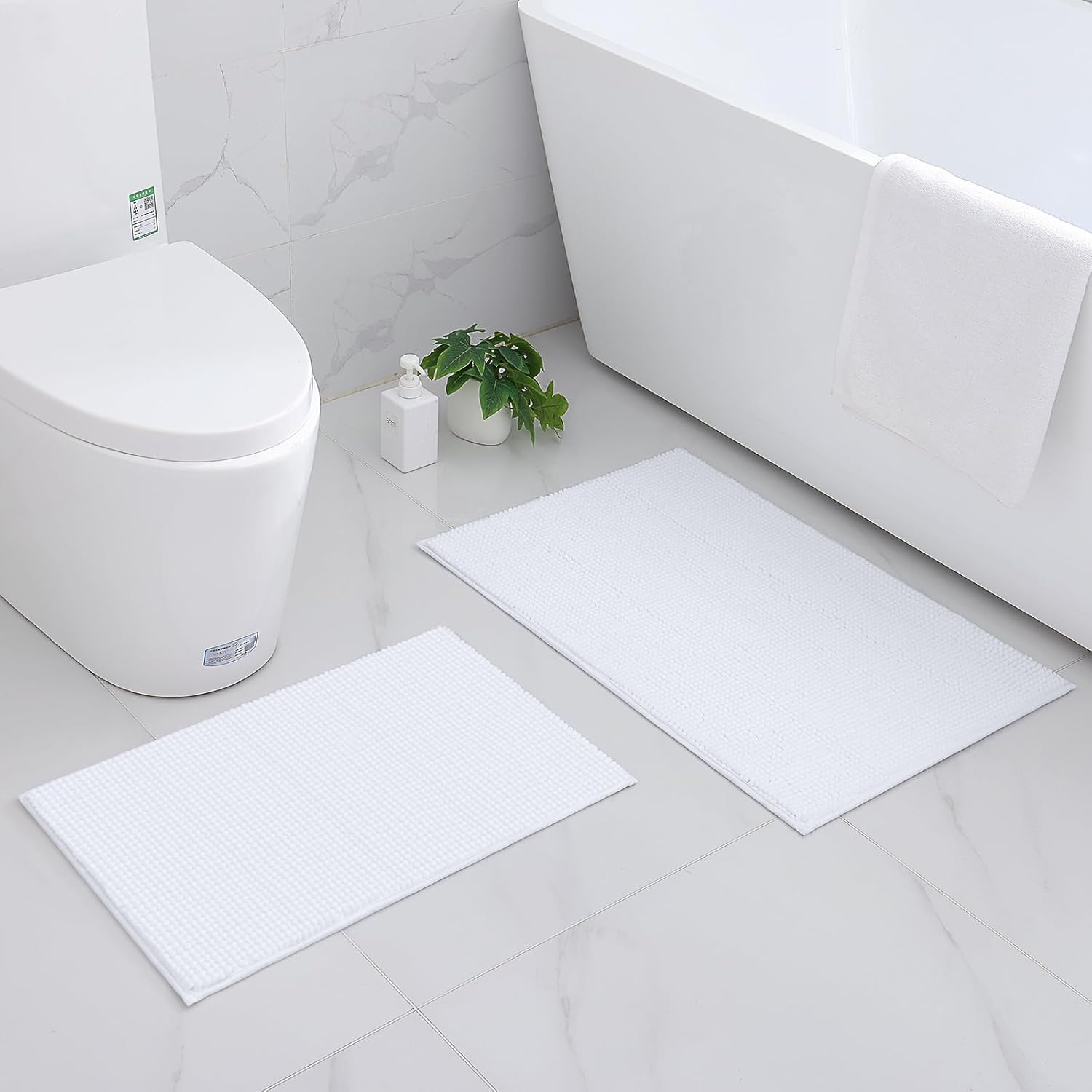 Комплект килими за баня Homaxy Chenille от 2 части, неплъзгащи се, мека абсорбираща постелка за баня, която може да се пере - 40 x 60 см + 50 x 80 см, бял