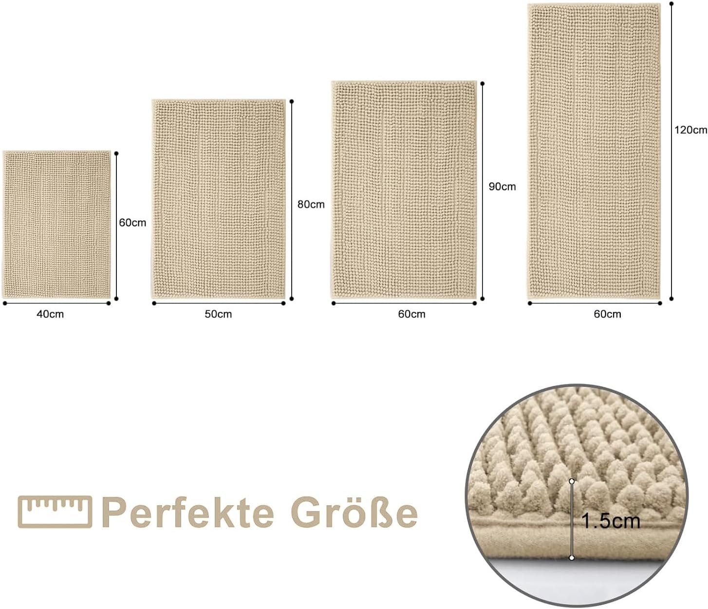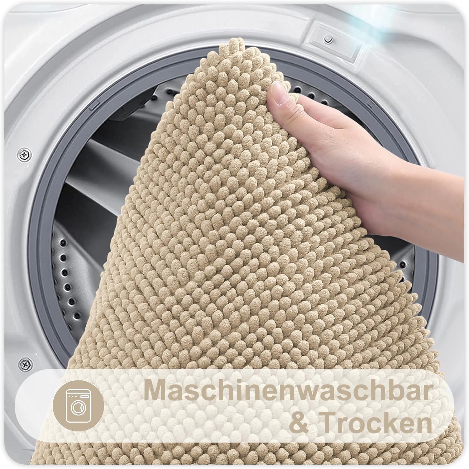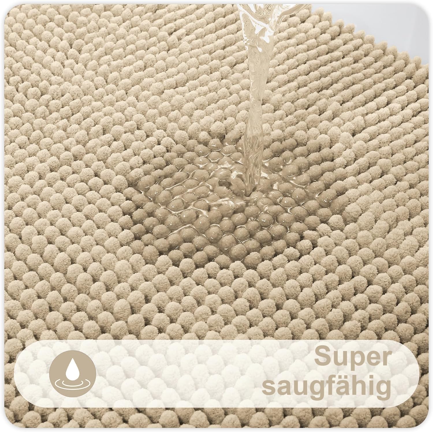 Комплект килими за баня Homaxy Chenille от 2 части, неплъзгащи се, мека абсорбираща постелка за баня, която може да се пере - 40 x 60 см + 50 x 80 см, тъмнобежов