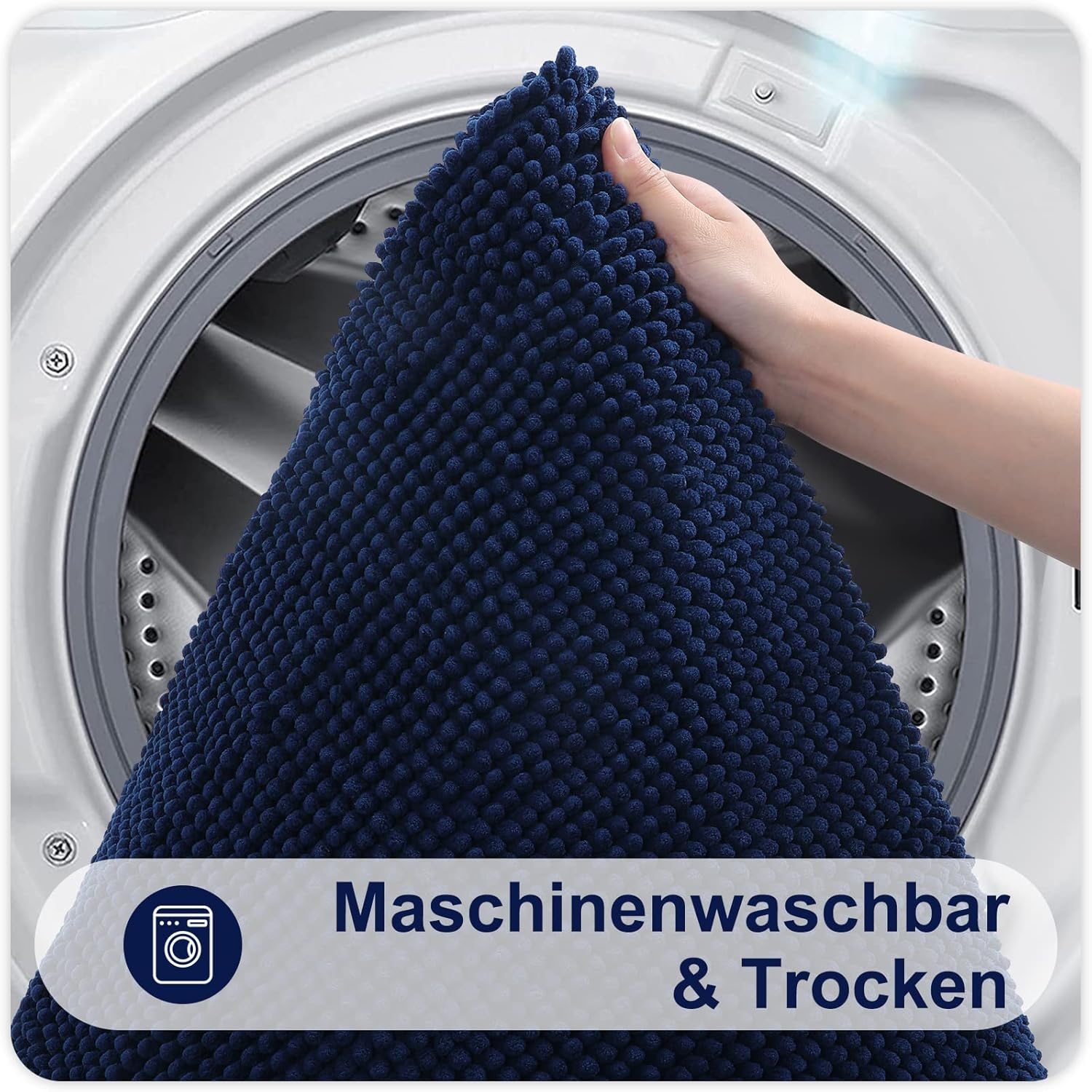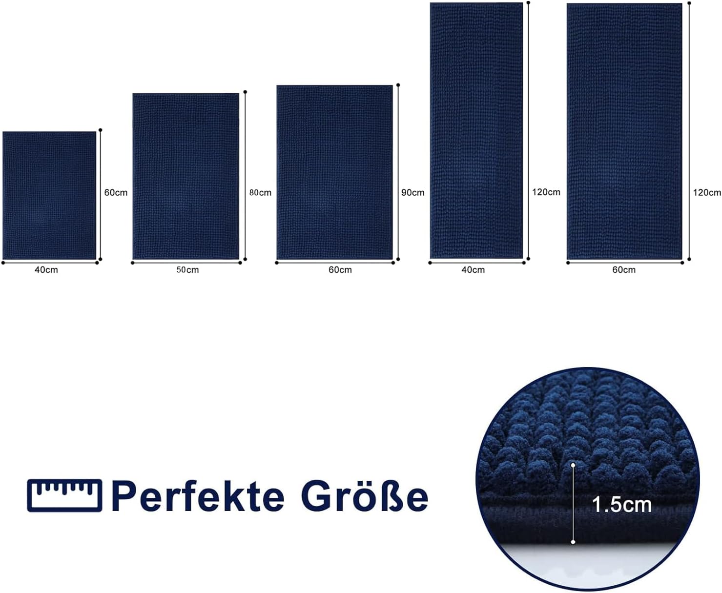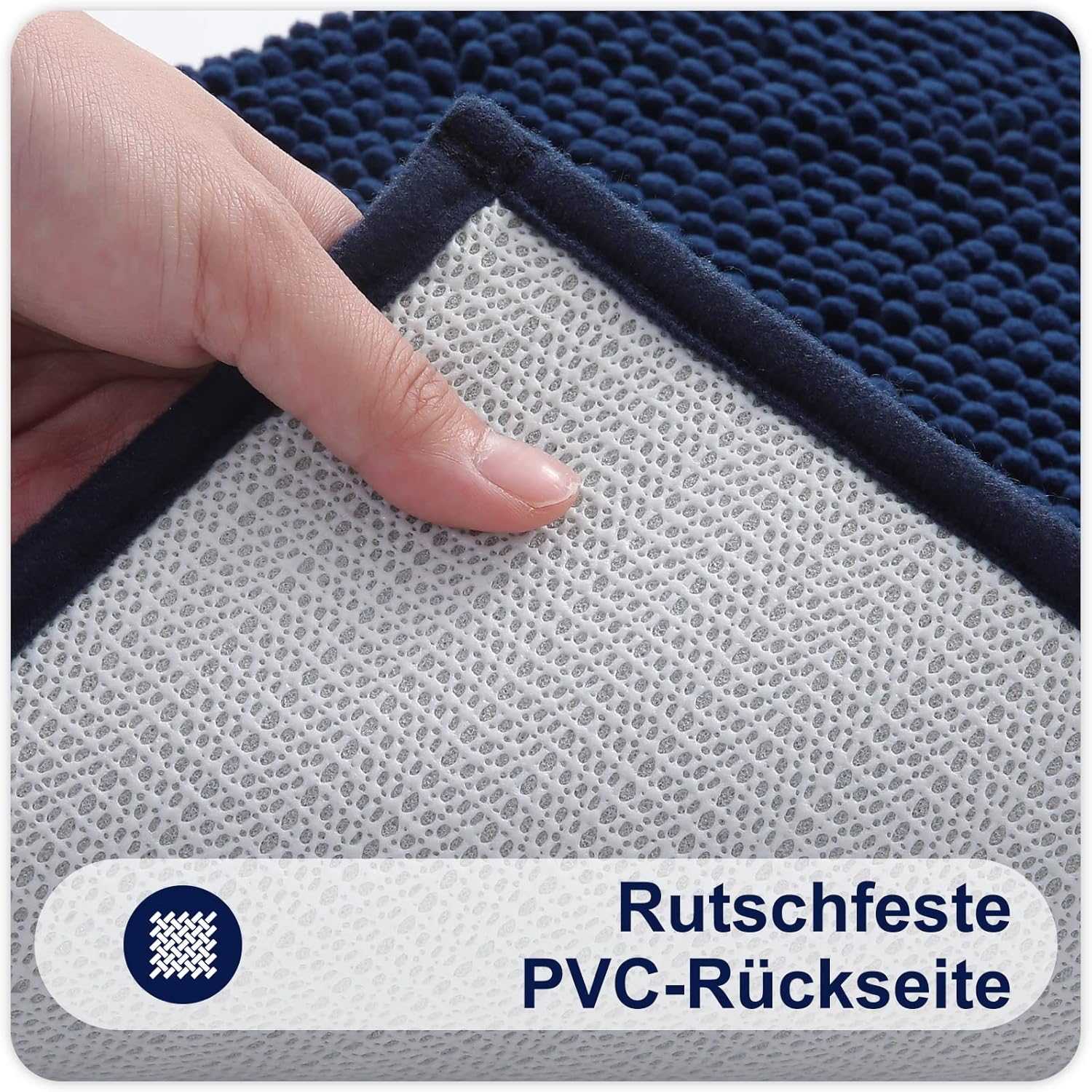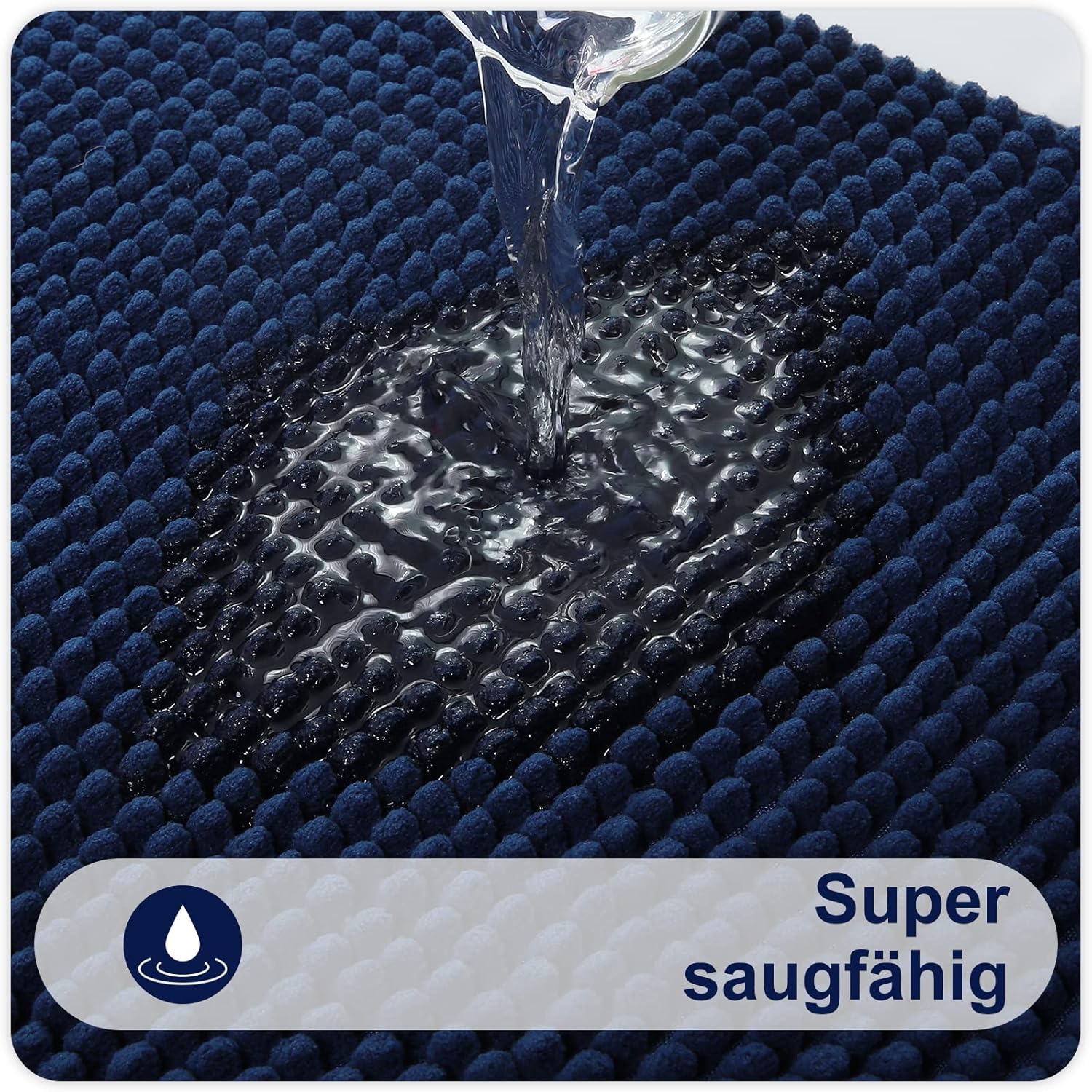 Комплект килими за баня Homaxy Chenille от 2 части, неплъзгащи се, мека абсорбираща постелка за баня, която може да се пере - 40 x 60 см + 50 x 80 см, тъмносиньо