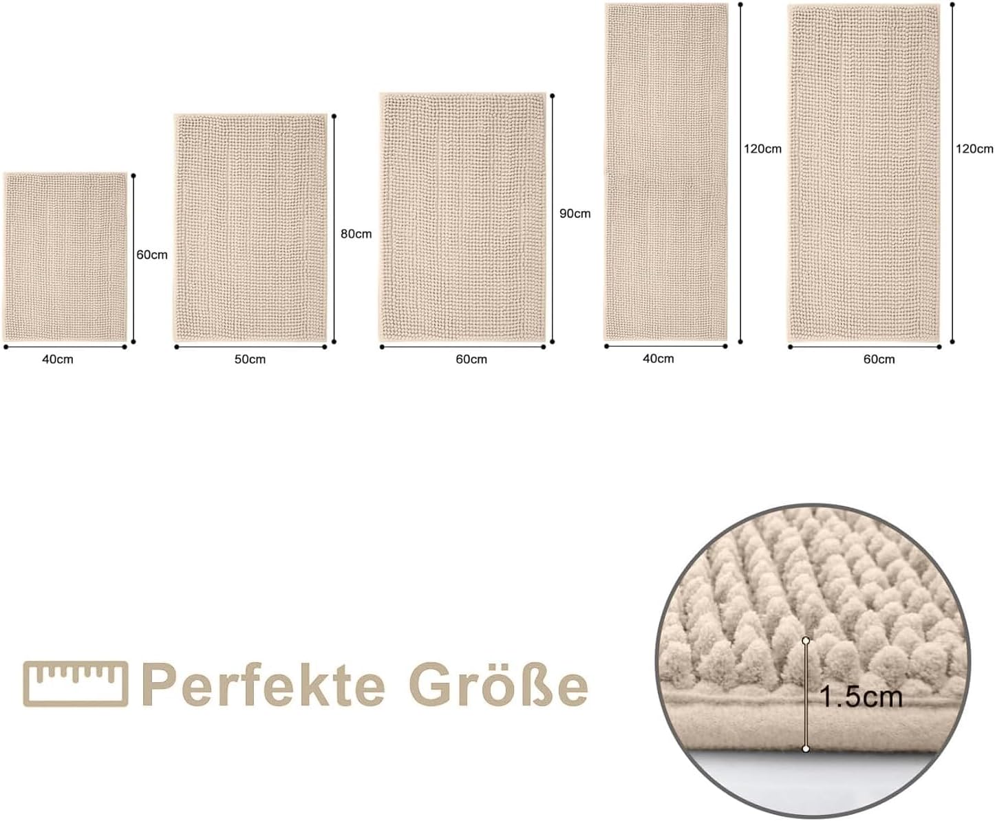 Комплект килими за баня Homaxy Chenille от 2 части, неплъзгащи се, мека абсорбираща постелка за баня, която може да се пере - 40 x 60 см + 60 x 90 см, бежов