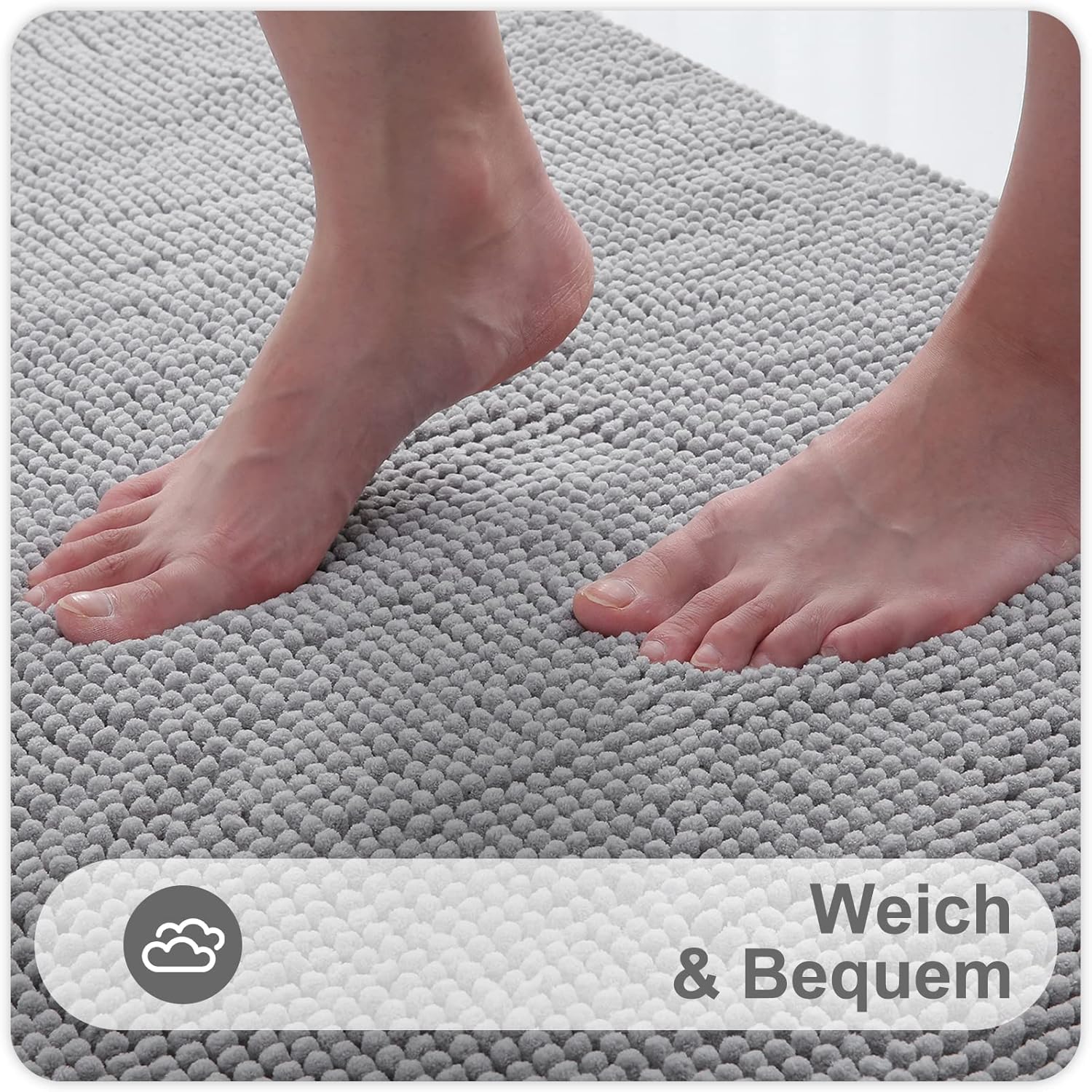 Комплект килими за баня Homaxy Chenille от 2 части, неплъзгащи се, мека абсорбираща постелка за баня, която може да се пере - 40 x 60 см + 60 x 90 см, светло сиво