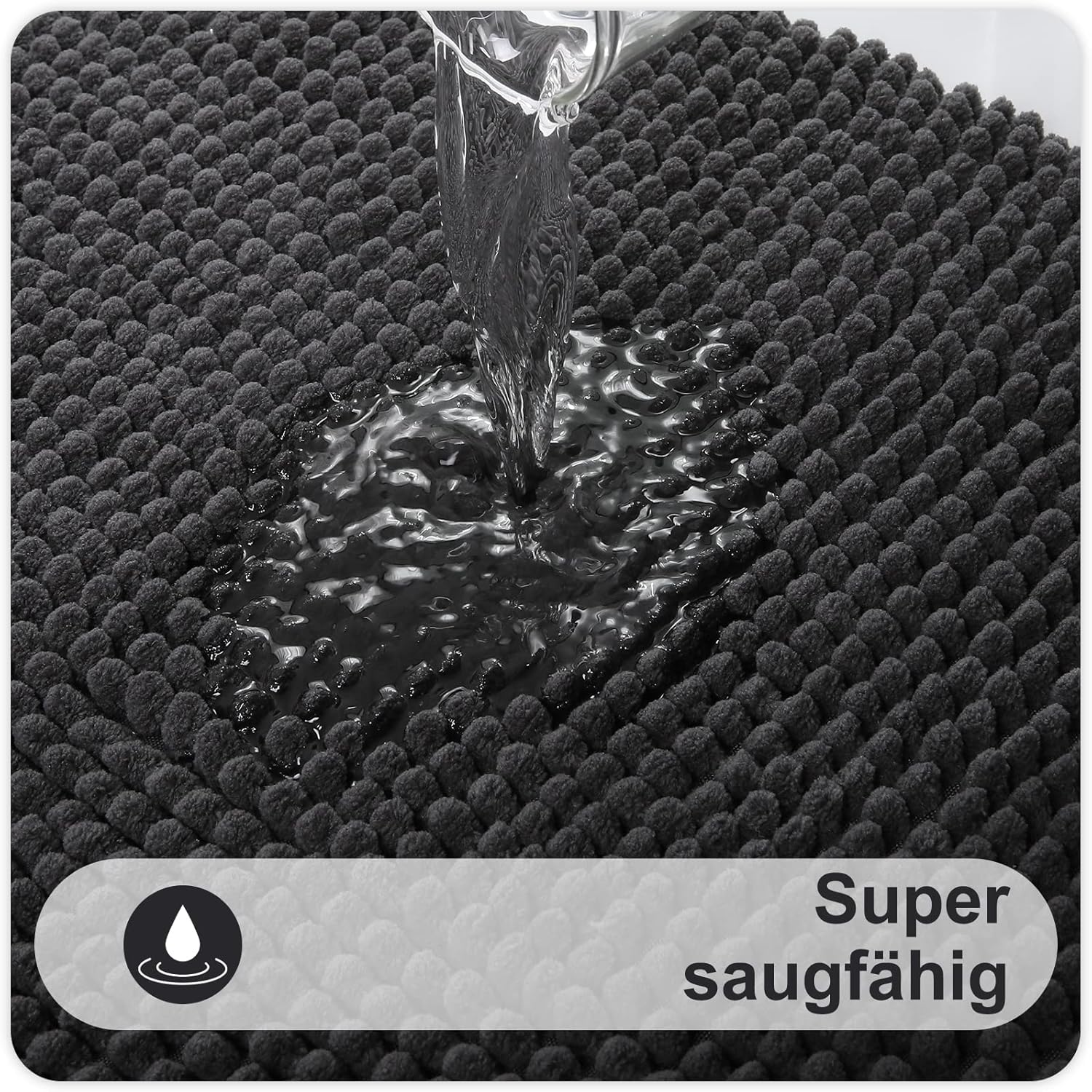 Комплект килими за баня Homaxy Chenille от 2 части, неплъзгащи се, мека абсорбираща постелка за баня, която може да се пере - 40 x 60 см + 60 x 90 см, тъмносив