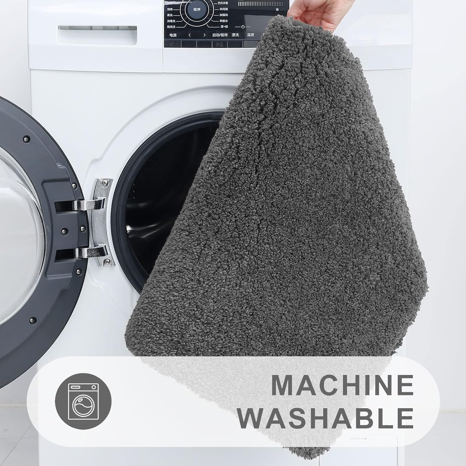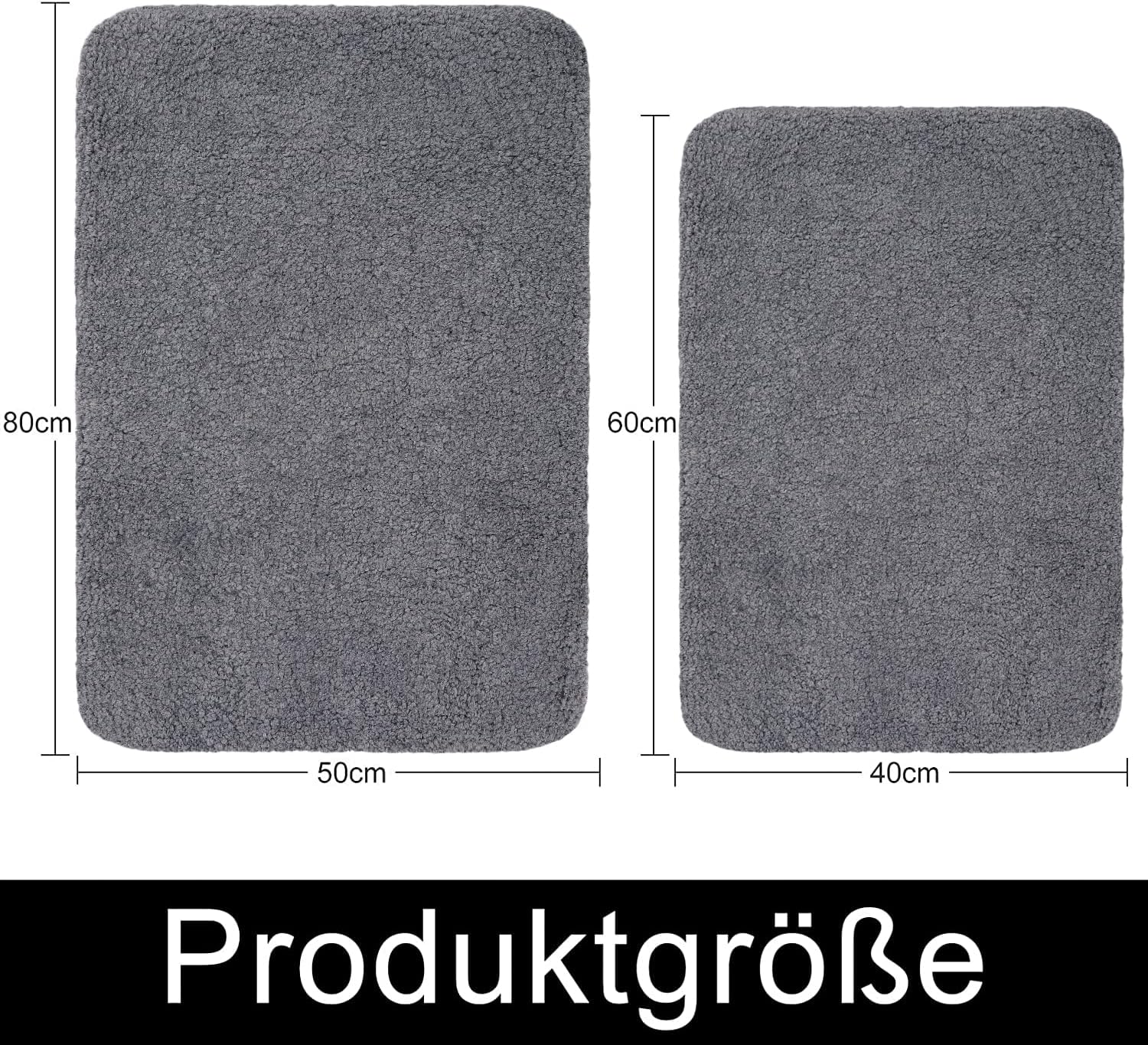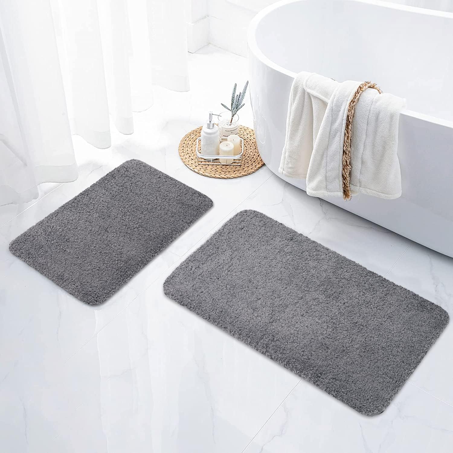 Комплект килими за баня Homaxy от 2 части, противоплъзгащ се, перещ се, мек килим за баня с висок косъм, пухкав комплект постелки за баня от микрофибър - 41 x 61 см + 51 x 76 см, сив