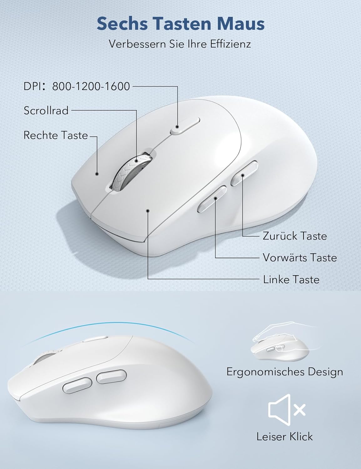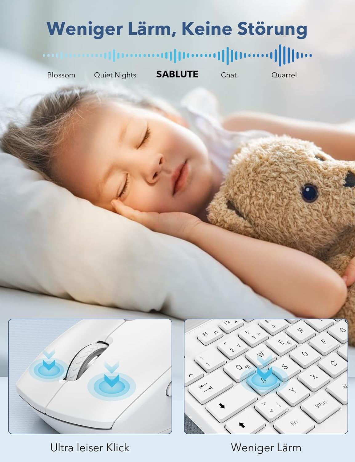 • 【ПО-МАЛКО ШУМ, ПОВЕЧЕ ФОКУС】 - Меки мембранни клавиши за тихо и плавно писане. Водоустойчиви, прахоустойчиви и устойчиви на разливане, вече можете да пишете тихо и удобно през целия ден. Безжичната мишка се усеща също толкова щракаща, но издава 95% по-малко шум. Край на притесненията, че ще безпокоите другите.