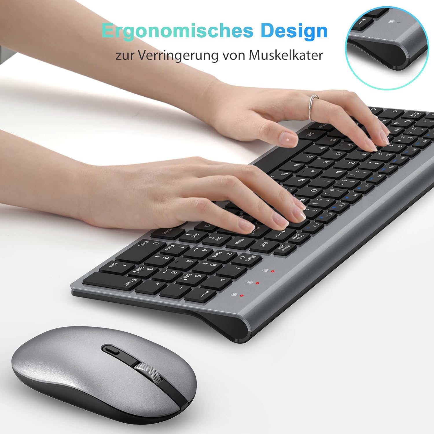 Комплект клавиатура и мишка cimetech безжична, 2.4G ултратънка преносима безжична клавиатура с мишка QWERTZ оформление (немски) за лаптоп, компютър, настолен компютър, преносим компютър, Windows