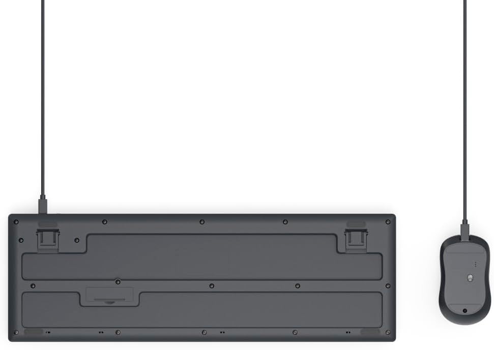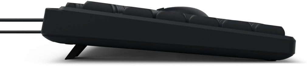 • Кабелна клавиатура за ергономично усещане при писане: регулируем ъгъл на наклон благодарение на сгъваеми крачета, неплъзгащи се, удобни, тихи клавиши за спокойна работа, клавиатура с пълен размер и цифров блок.