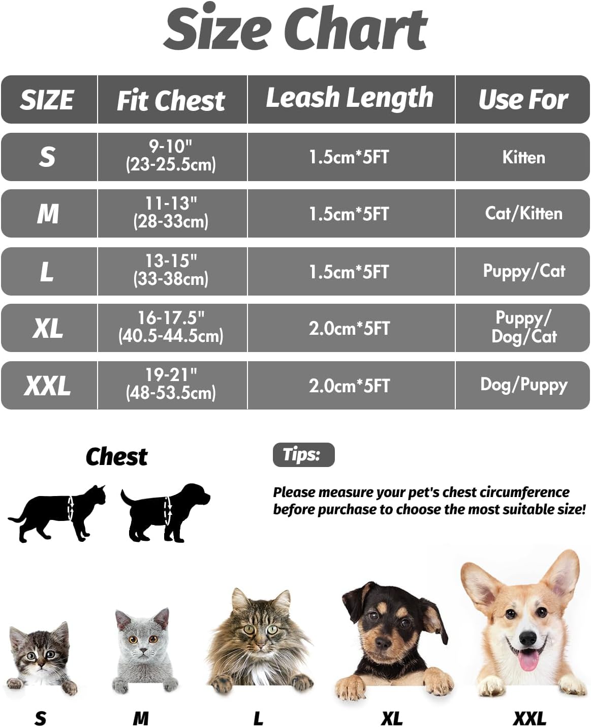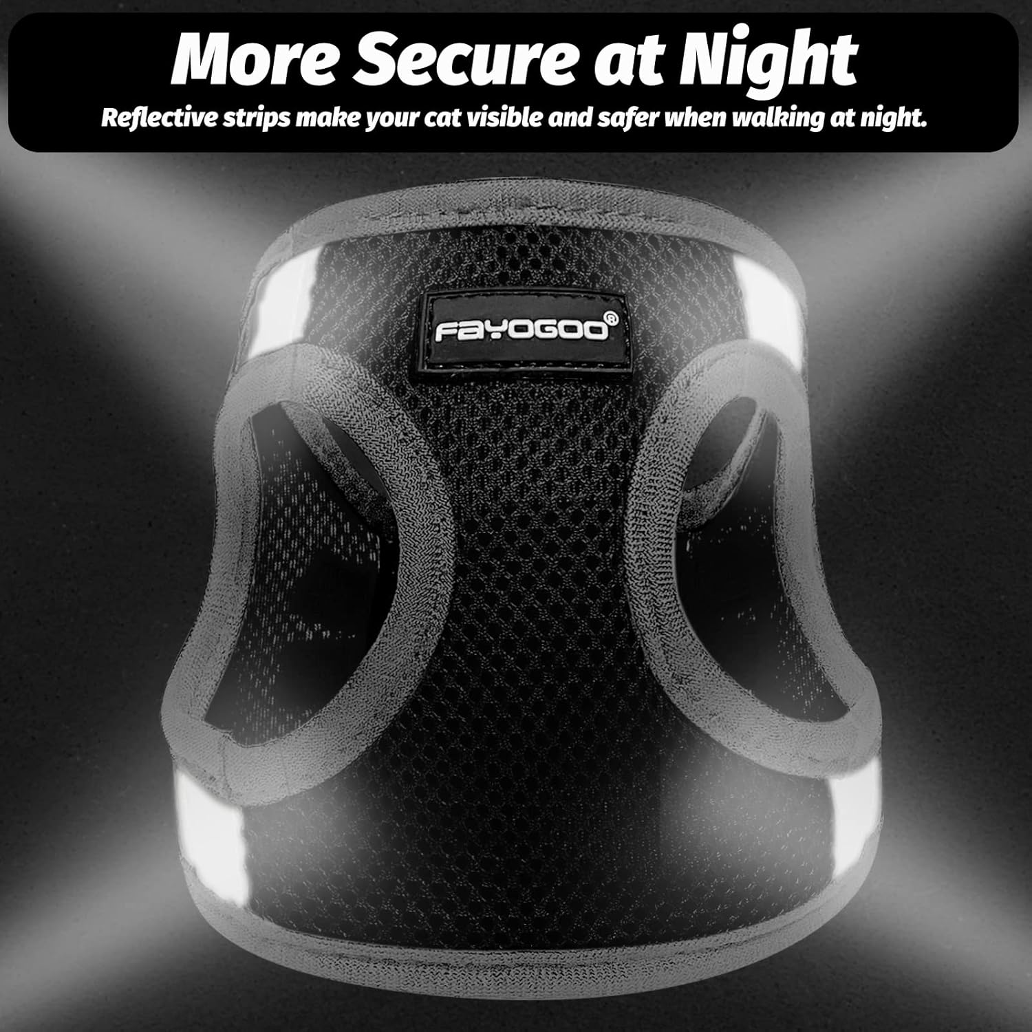 Комплект котешки нагръдник FAYOGOO с каишка, Защита от бягство, Регулируем нагръдник за котки и котенца, Мек нагръдник със закопчаване, Каишка за котки, Каишка за отзоваване