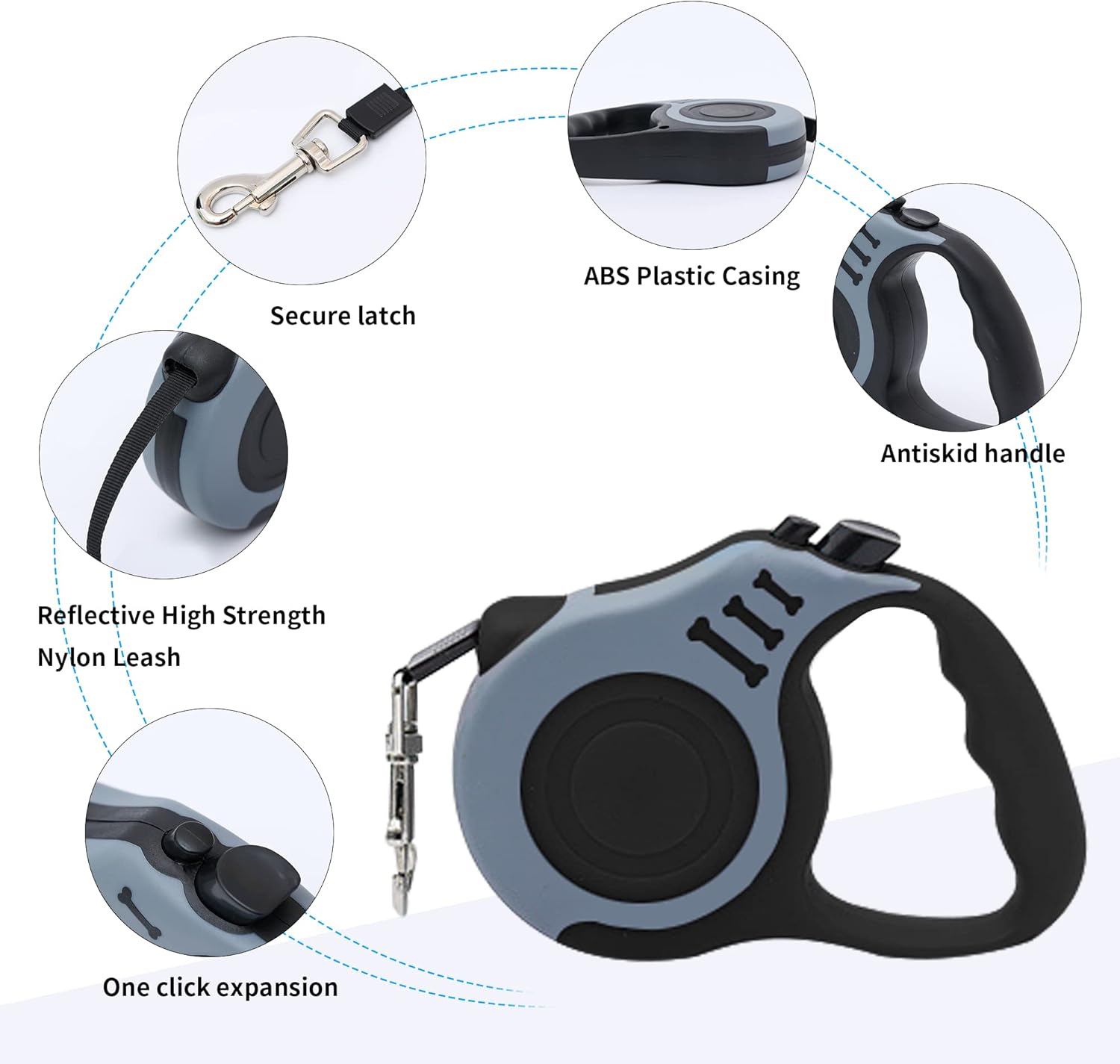 • Прибиращ се дизайн: поводът за котка има прибиращ се дизайн и ергономична, неплъзгаща се дръжка за лесно и сигурно захващане. Заключващият бутон е проектиран с 4 режима, така че можете да го поставите на пауза, заключите, отключите или разтегнете. Прибиращата се каишка с дължина 5 м позволява на вашия домашен любимец да се разхожда удобно, без да се притеснявате, че ще нарани ръката ви.