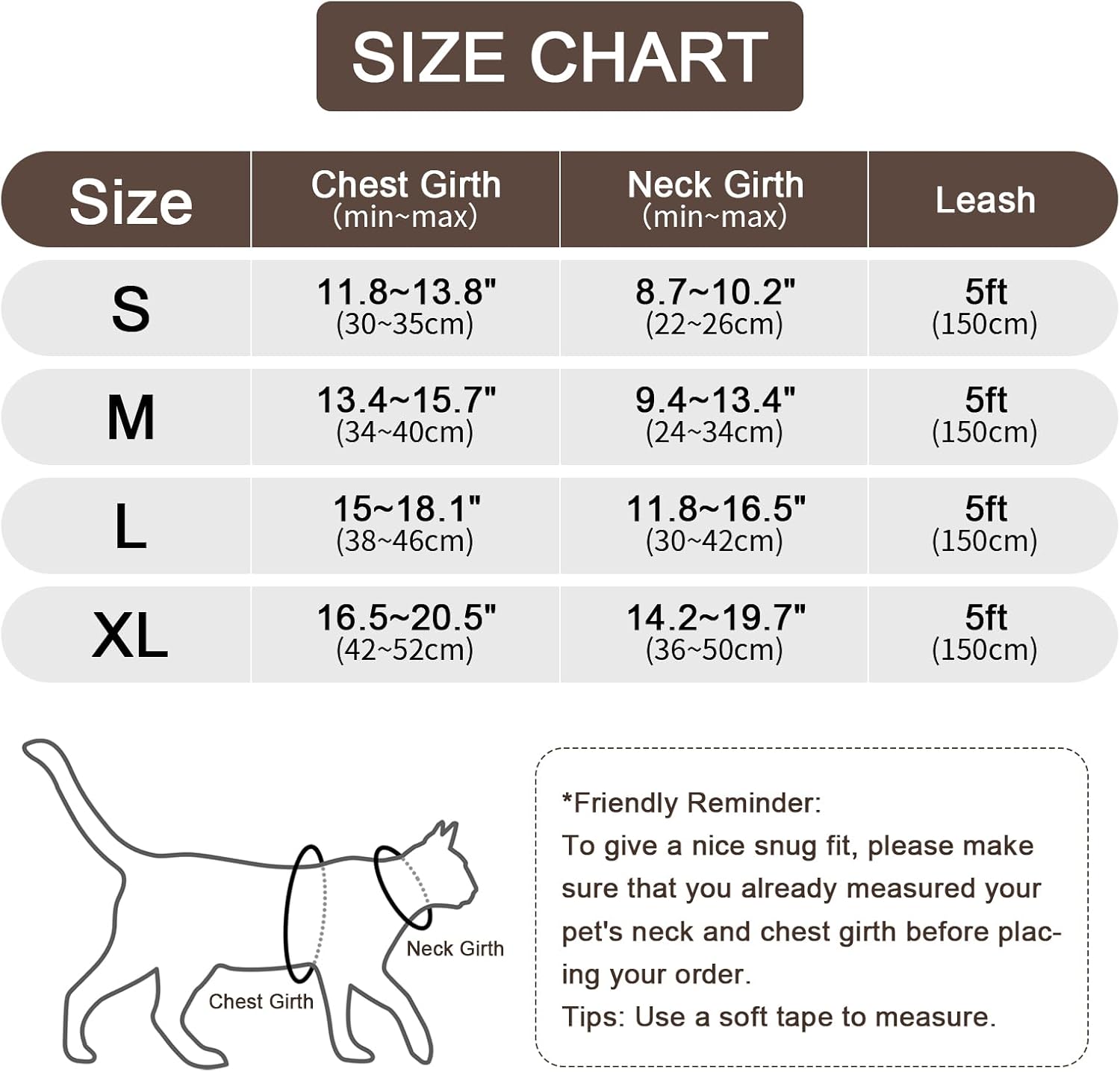 • Пакетът включва 1 XL нагръдник и 1 найлонова каишка (150 см). За да сте сигурни, препоръчваме да използвате ролетка, за да получите по-точни данни. Тъй като котките са много чувствителни, можете да ги разсейвате с лакомства, докато миете чиниите.
