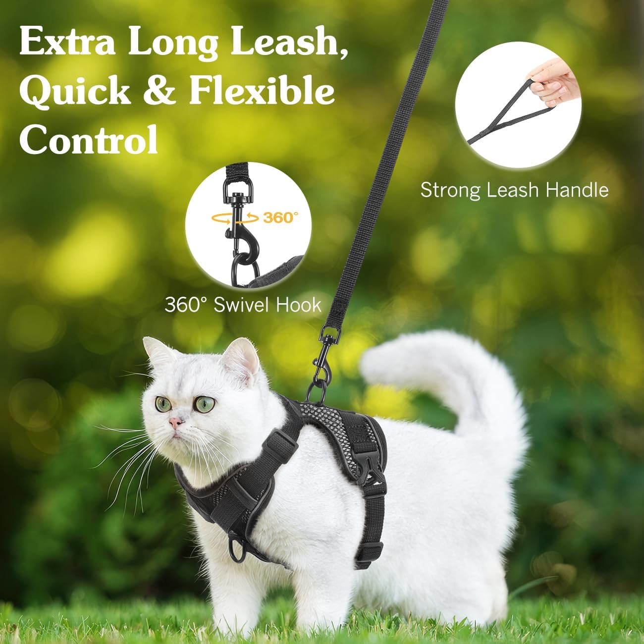 • По-безопасно и лесно за управление: светлоотразителните ленти са предназначени да гарантират безопасността на дейностите на вашата котка на открито през нощта. Към повода може да се прикрепи регулируем нагръдник за котенца с 2 здрави D-образни пръстена, което улеснява воденето на домашния любимец, предотвратява бягството му и осигурява свобода на движение. Дизайнът на жилетката разпределя налягането на повода равномерно по гърдите и раменете, за да предотврати задавяне или напрежение във врата.